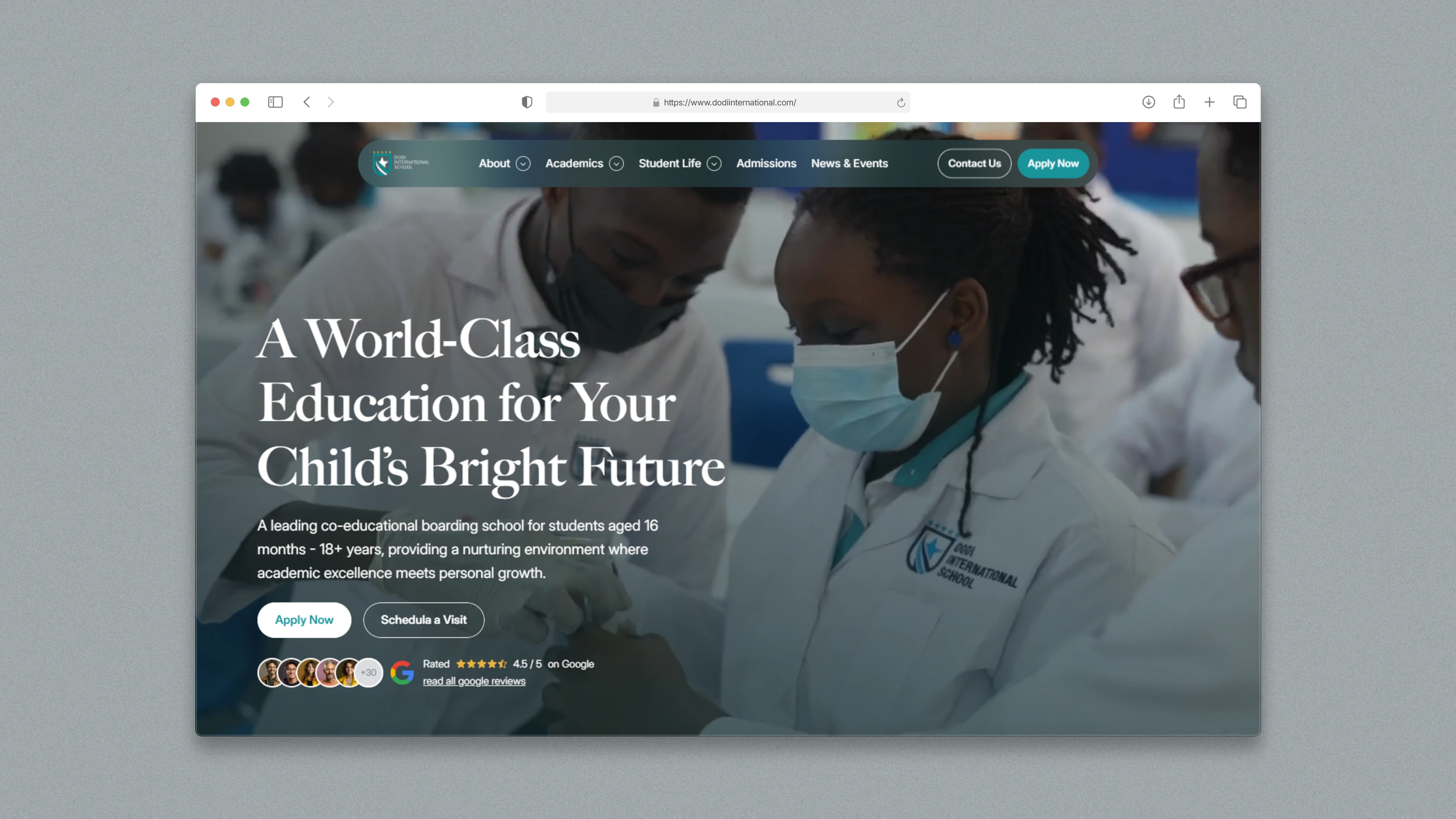 • Restructured navigation into clear sections: About, Academics, Student Life, Admissions and News & Events