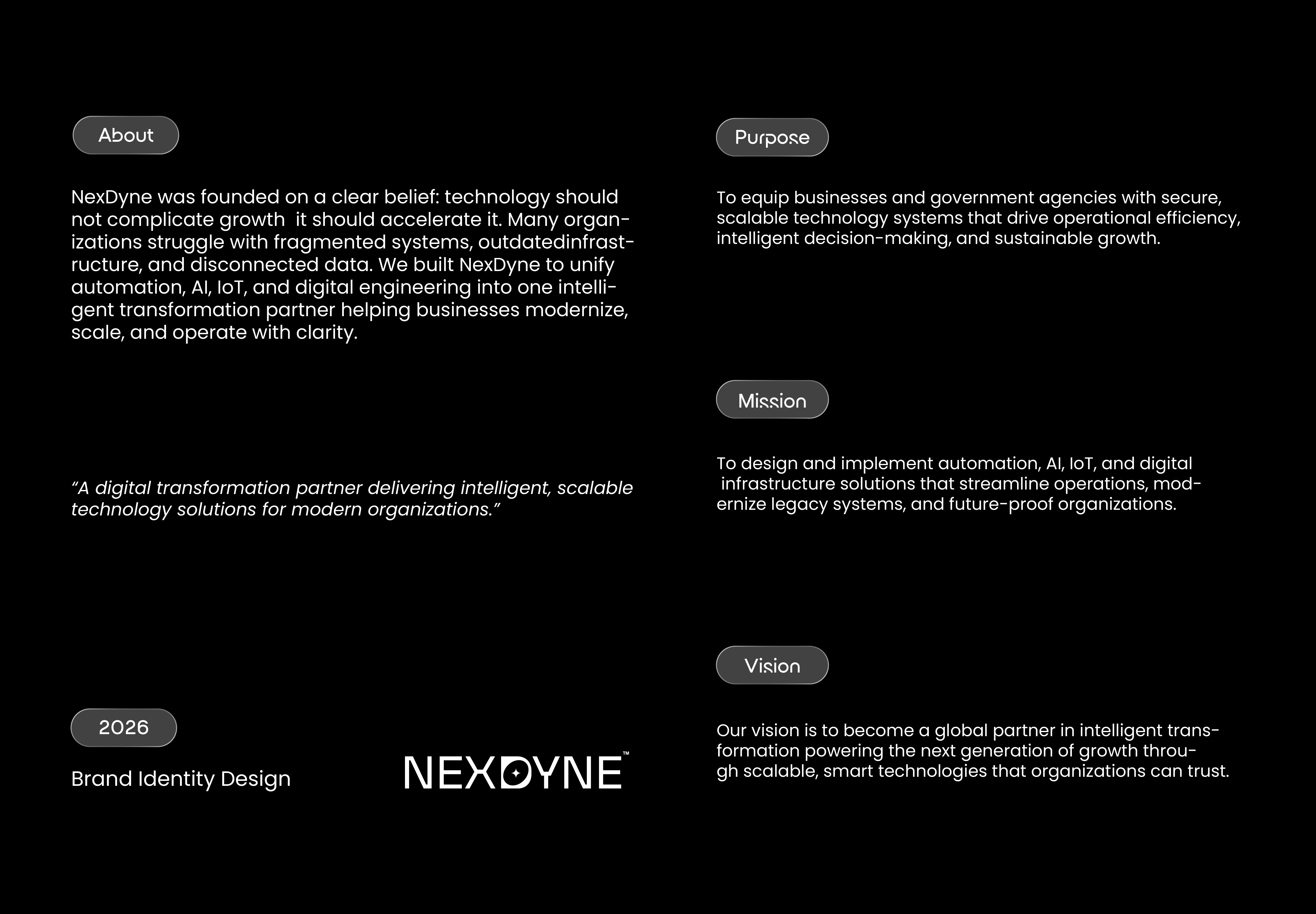 NexDyne's purpose is to equip businesses and government agencies with secure and scalable technology systems that drive efficiency.