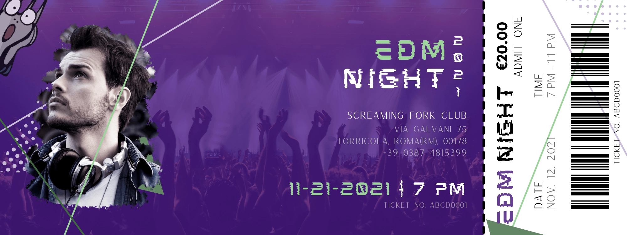 A mockup of a Ticket for an EDM night for a nightclub that would located in Rome.