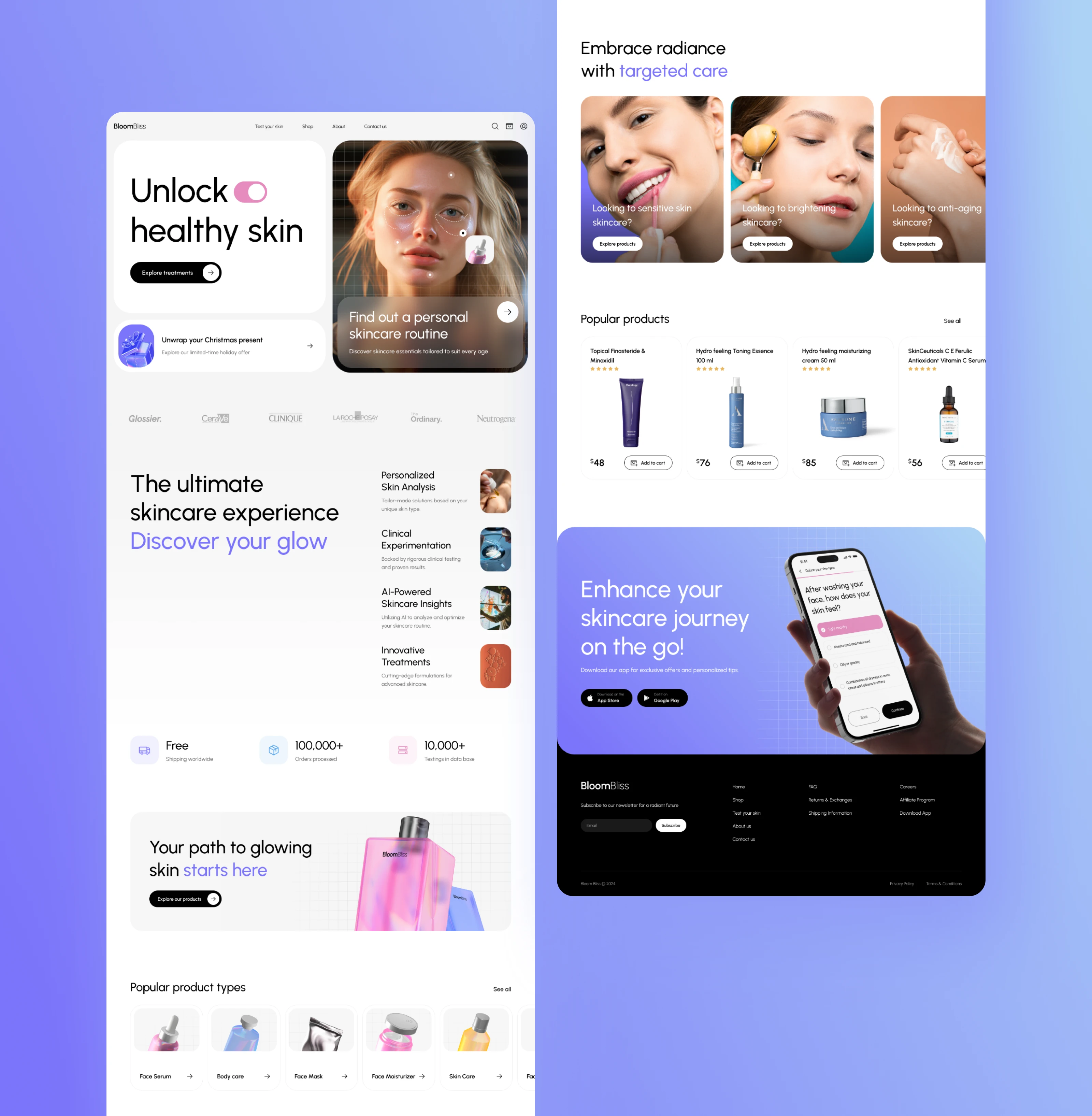 A personalized skincare platform using AI to analyze skin, recommend tailored products, and deliver an immersive, content-rich beauty experience.