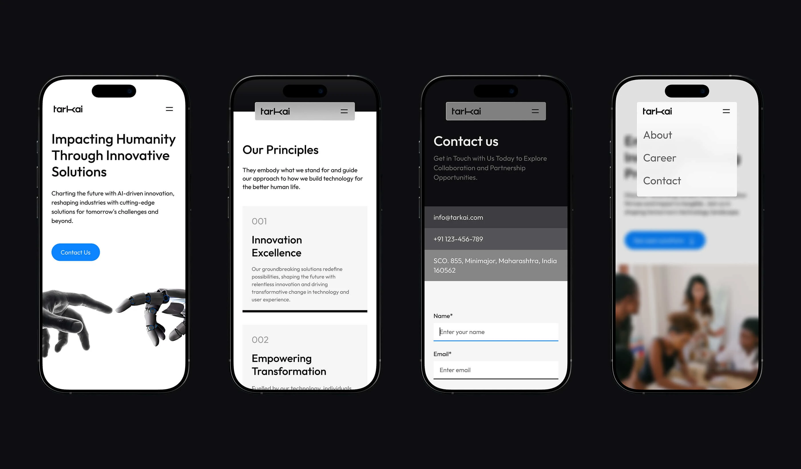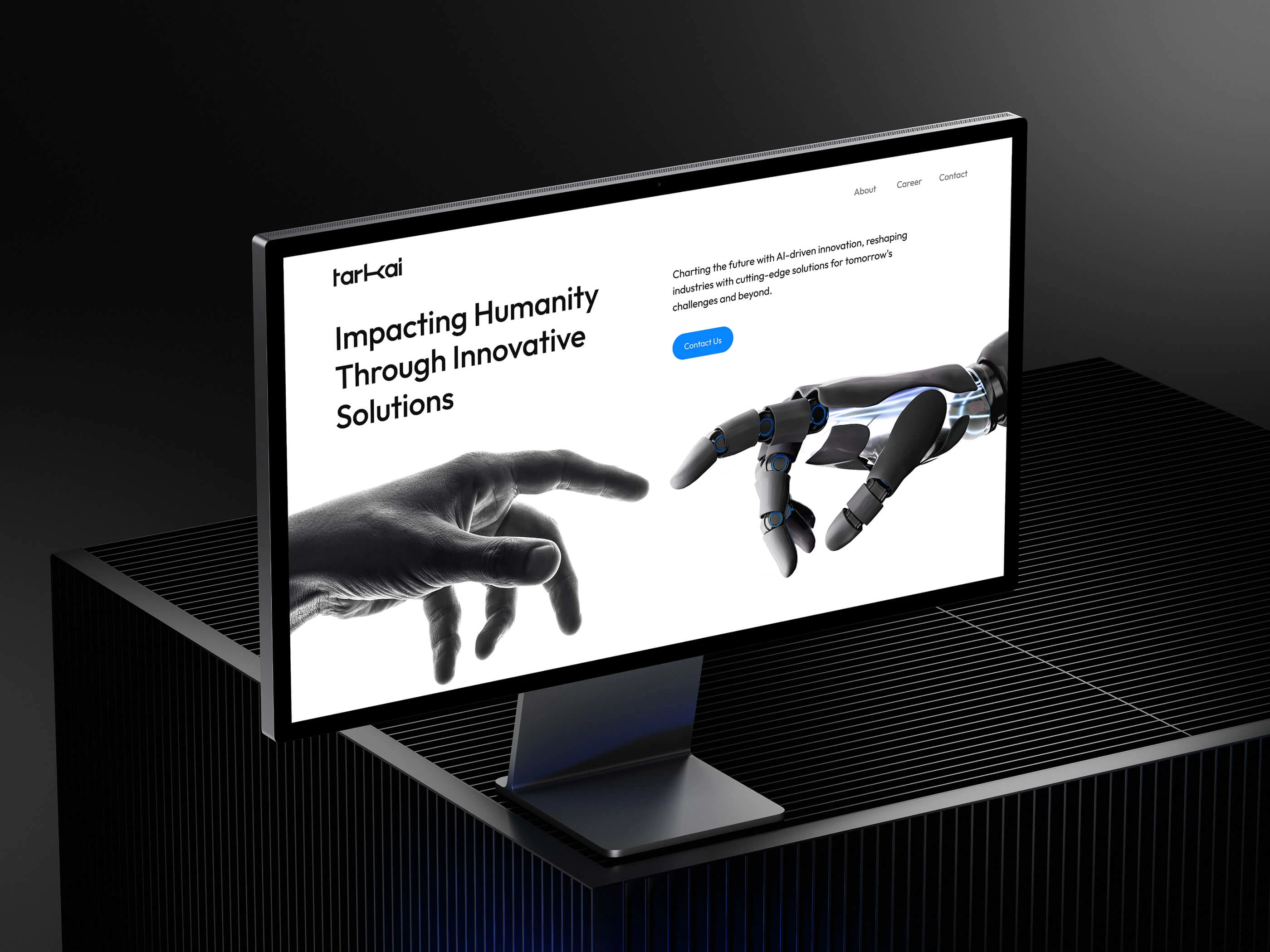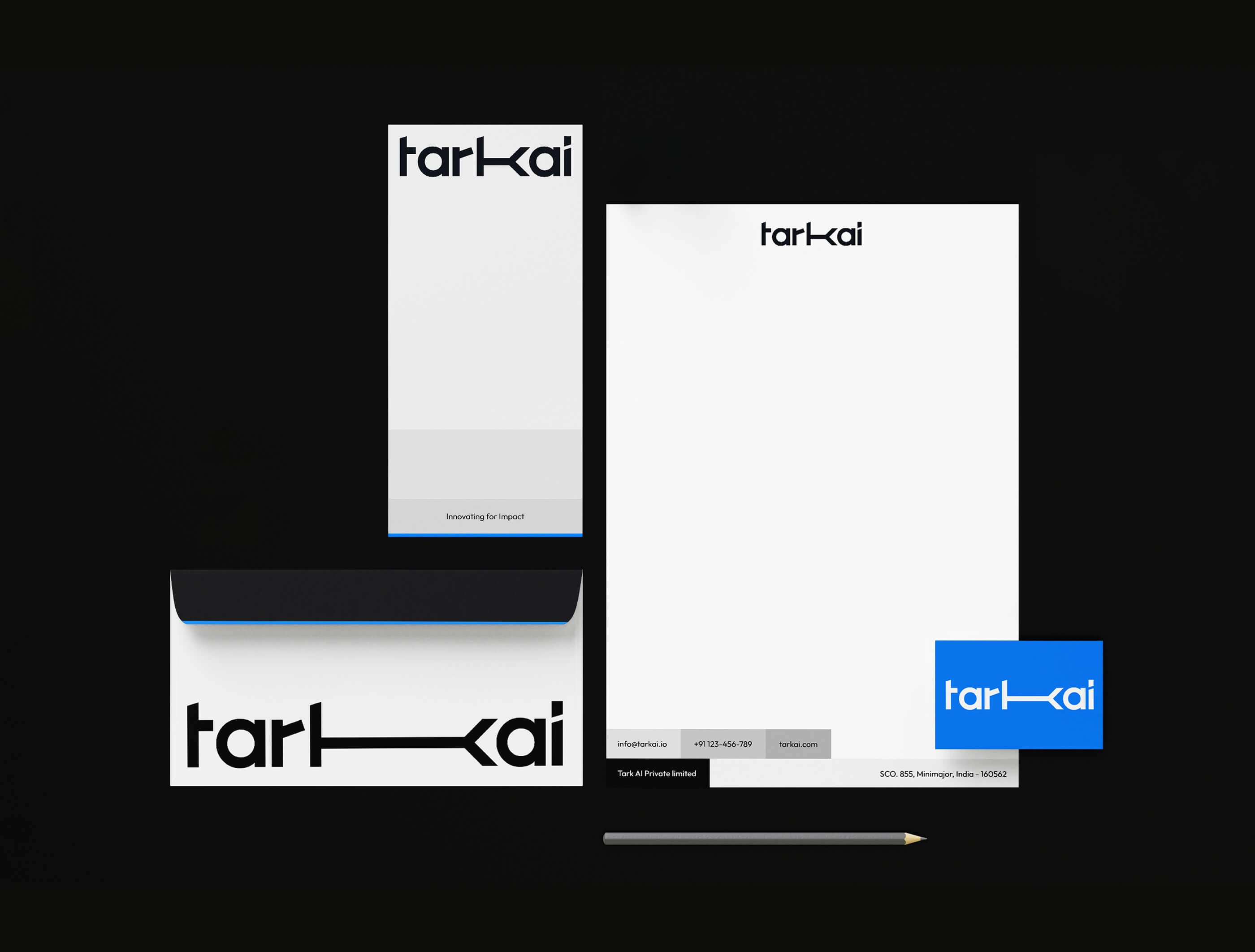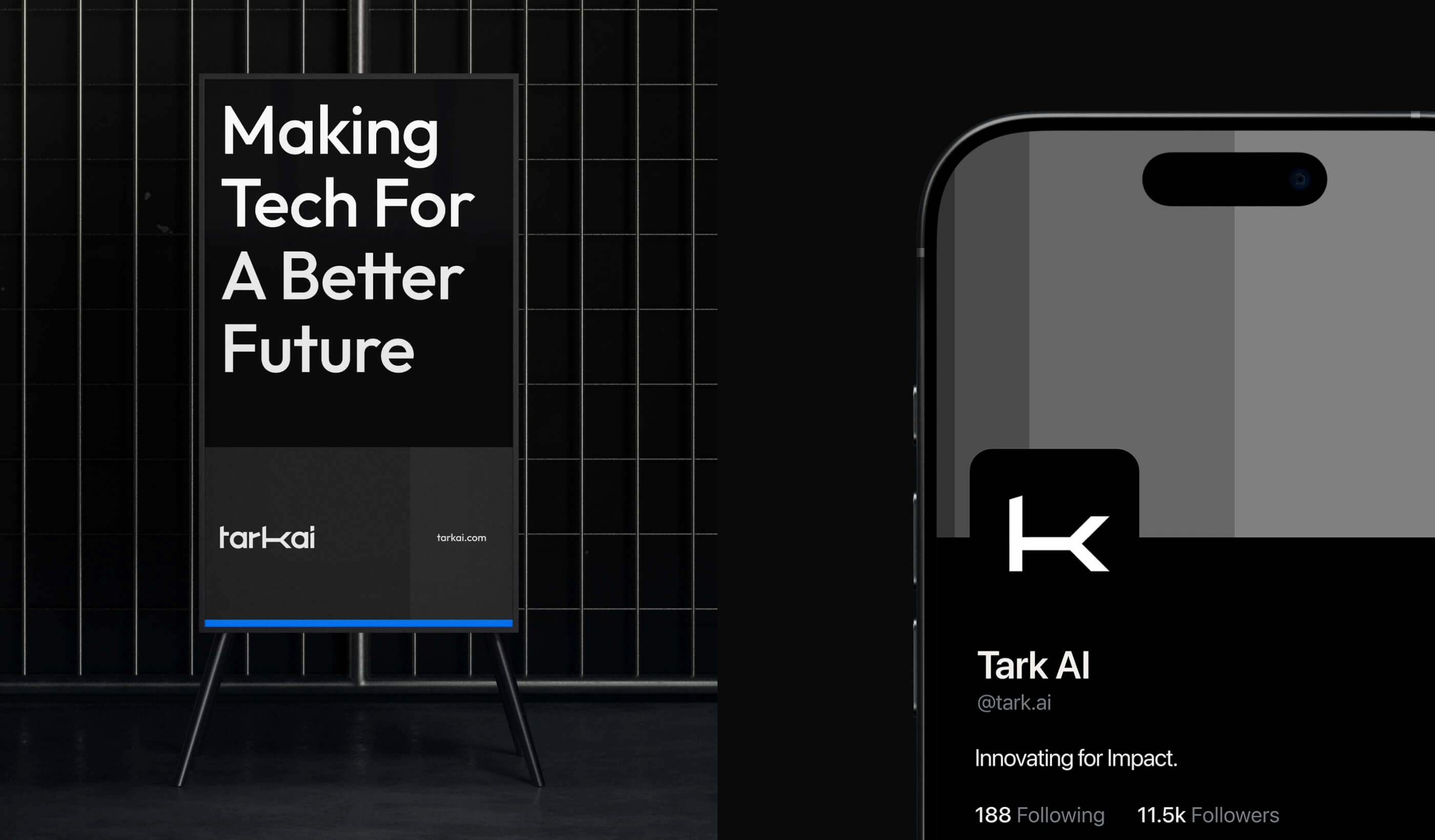 Tark AI’s evolved brand identity reflects its commitment to innovation and clarity. The dynamic logo, with its modular design, captures the essence of adaptability and intelligence, embodying Tark AI’s mission to enhance human lives. By integrating technology seamlessly into everyday experiences, Tark AI redefines what’s possible, delivering solutions that inspire trust, empowerment, and progress. Every touchpoint resonates with modernity, reliability, and purpose, reflecting the brand’s vision of a future designed for better living.