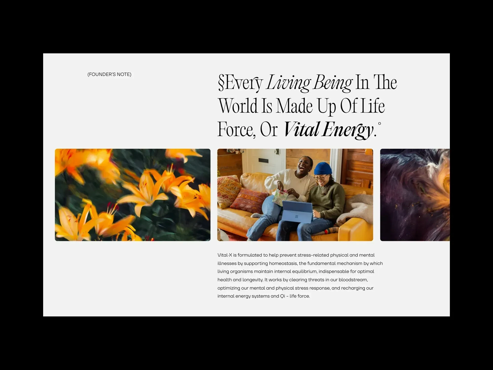 The strategy leaned into what made the company different: research-driven formulas, innovative liquid delivery, and active herbal “life forces”. Instead of trying to blend into the supplement category, we intentionally pushed in the opposite direction - toward futuristic, science-led, almost otherworldly wellness.