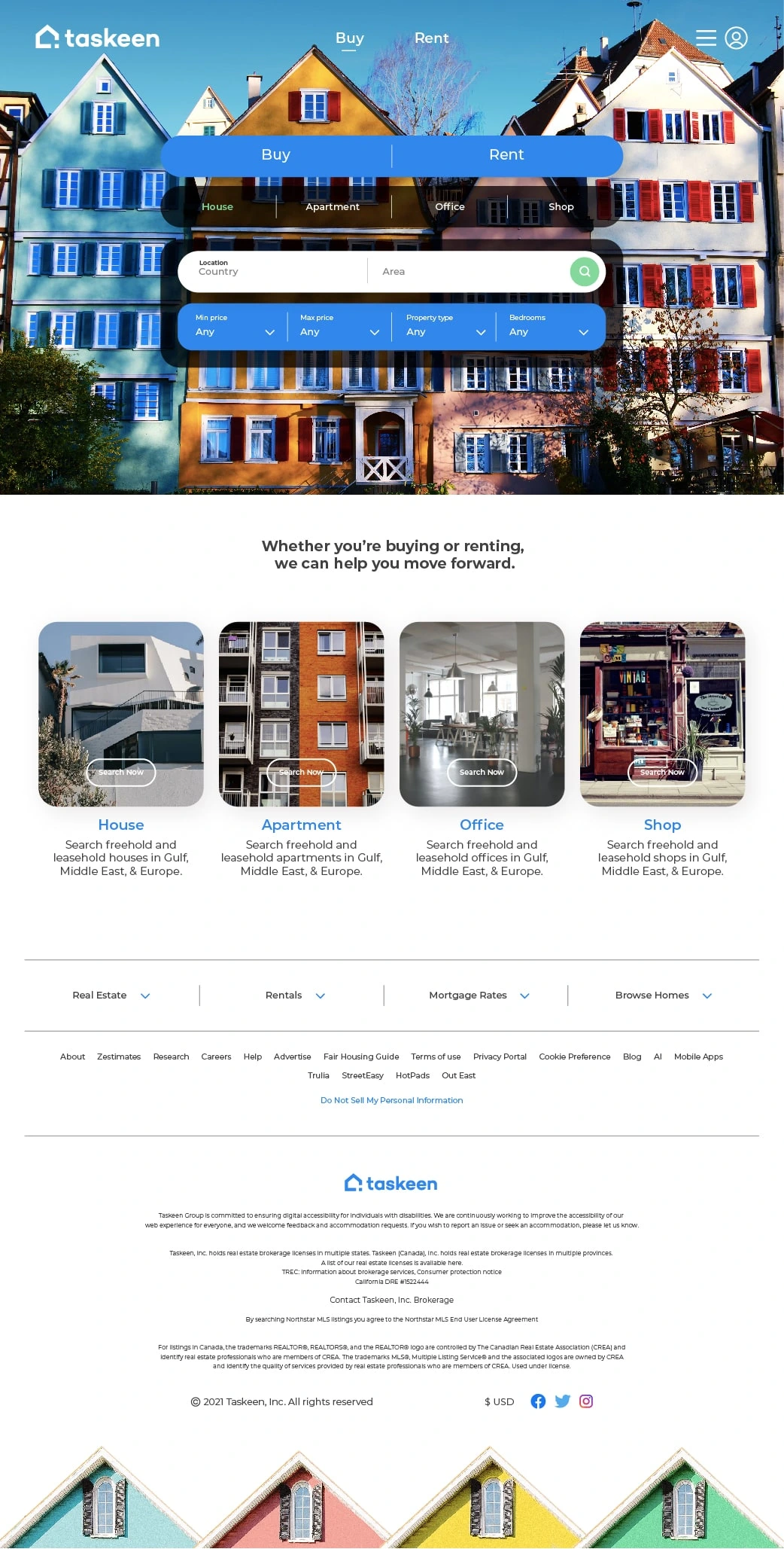 For this project, client wanted user friendly home page that is easy to navigate so I designed and developed the following page using framer. A comprehensive real estate landing page aimed at streamlining the property search experience across the Gulf, Middle East, and Europe. My primary goal was to balance a vibrant, welcoming aesthetic with a high-utility interface. I curated a bold, colorful hero section to evoke a sense of "home" and community, while implementing a centralized search hub that allows users to toggle seamlessly between buying and renting. By prioritizing clean typography and intuitive categorization, I ensured that users could navigate from broad exploration to specific property types, like houses, offices, or shops, in just a few clicks.