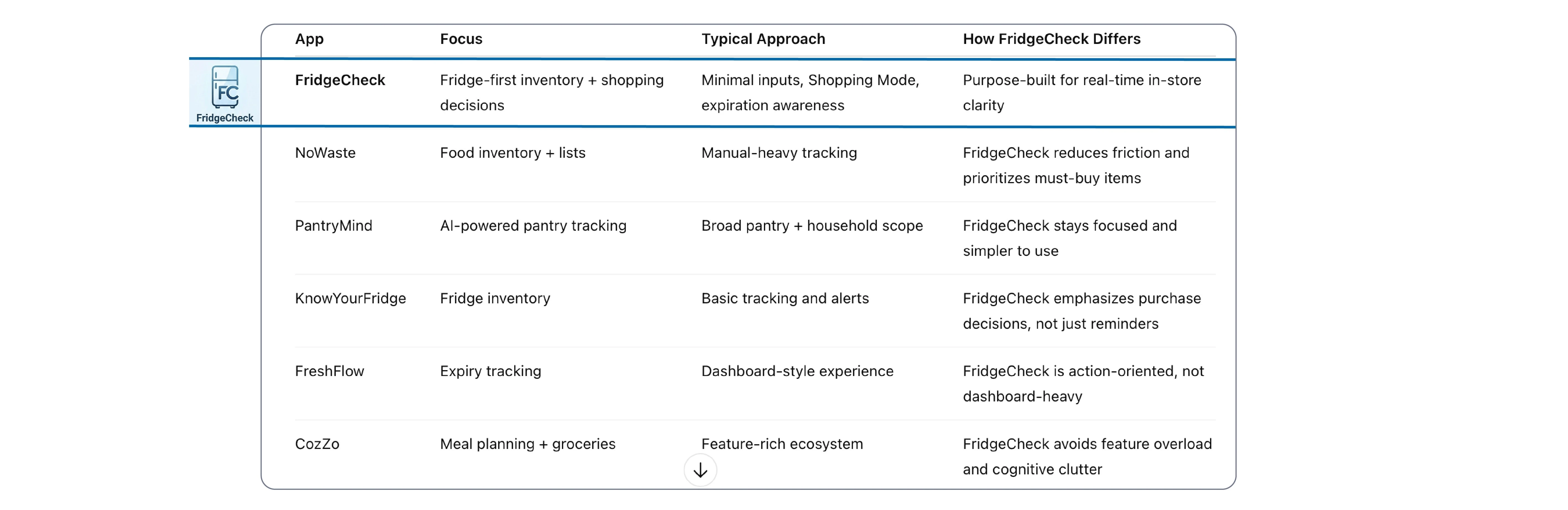 FridgeCheck is a smart kitchen inventory app that helps people keep track of what’s in their fridge, what’s about to expire, and what they actually need—right when it matters most.