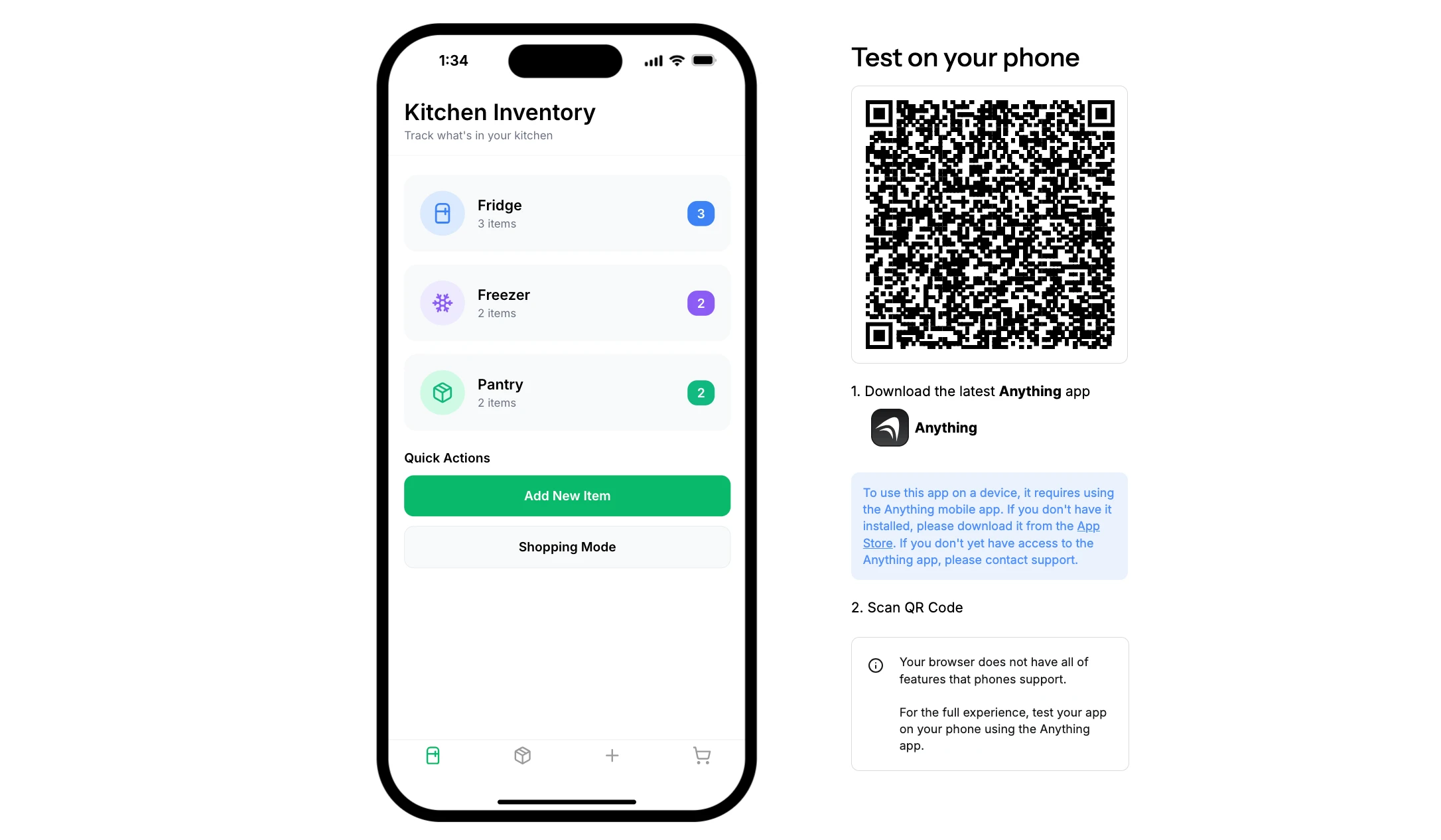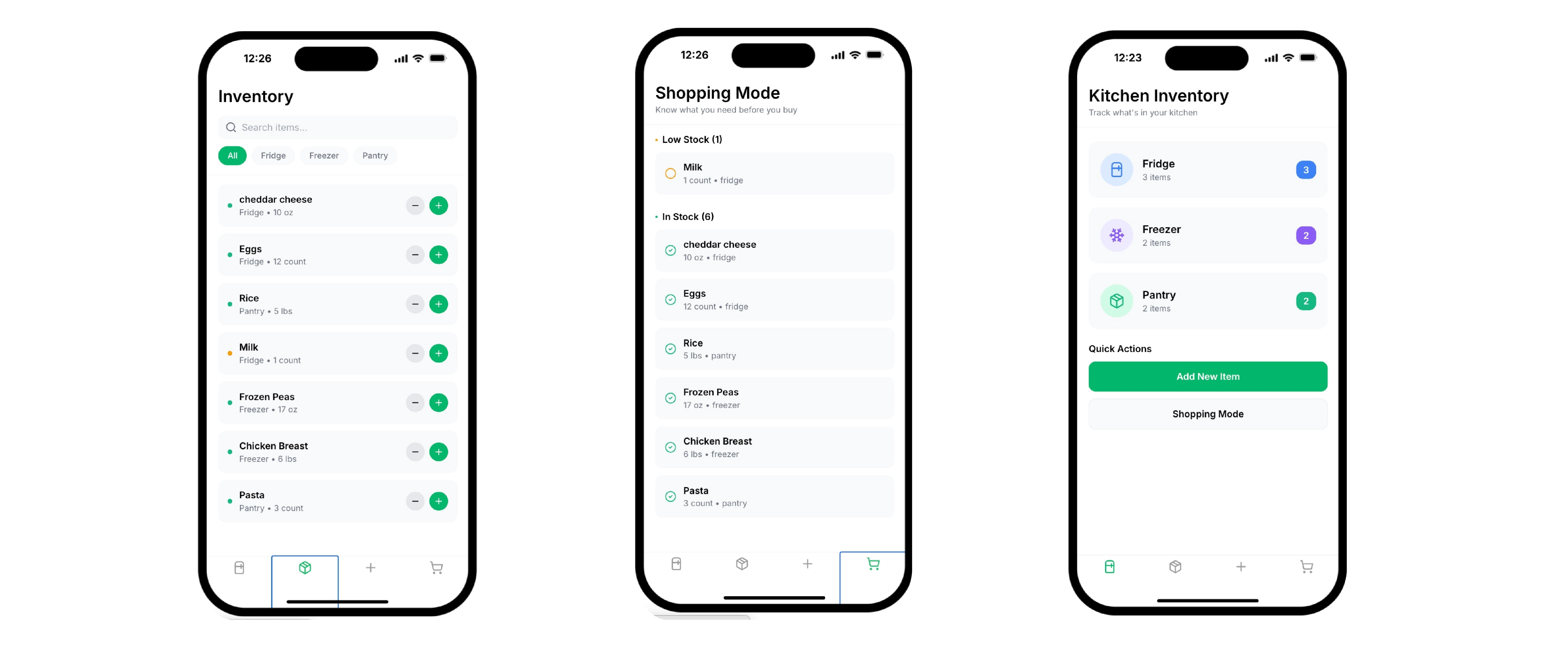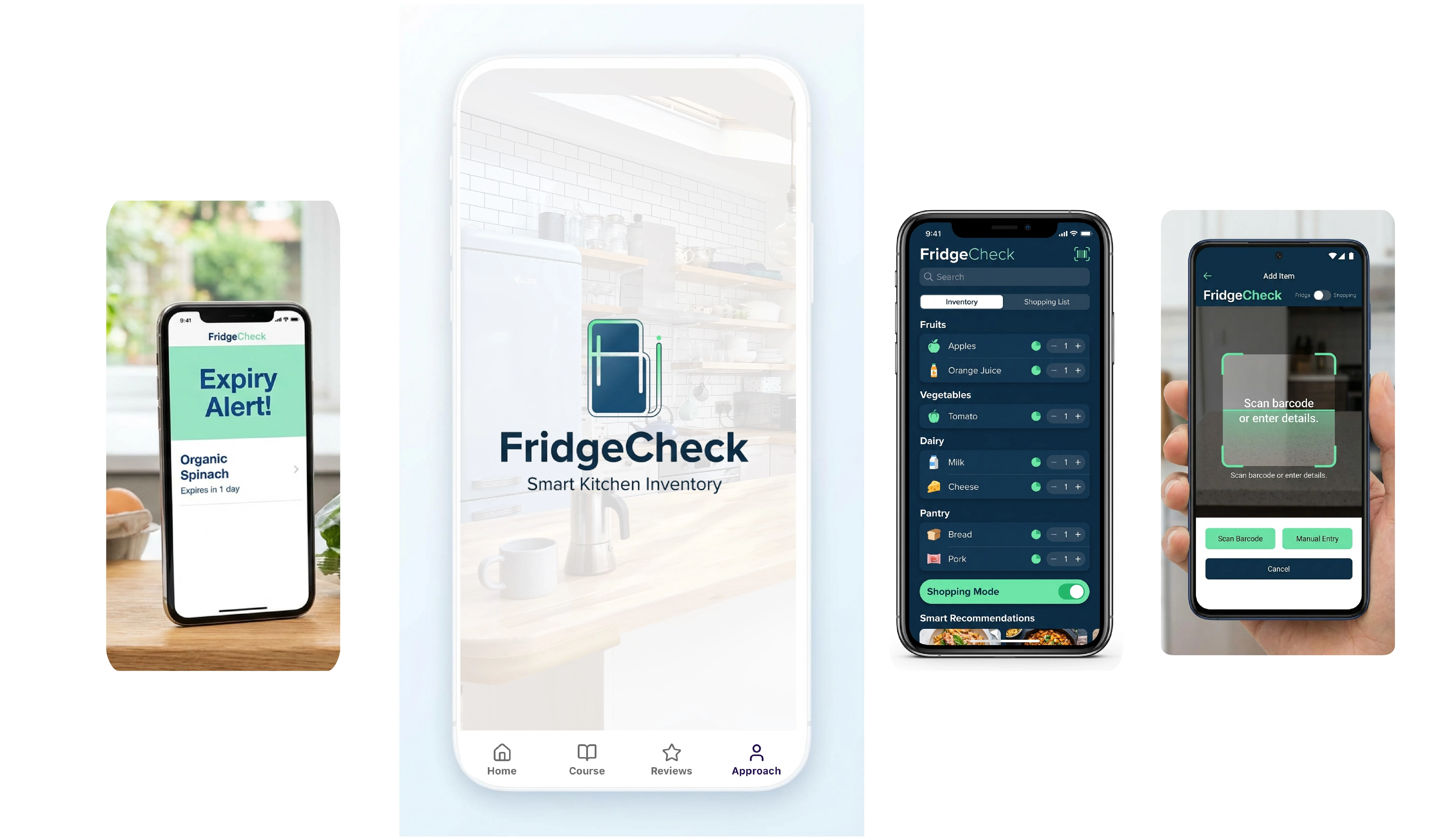 The app supports both manual entry and scan-based input, with a dedicated Shopping Mode that surfaces only what’s necessary.
