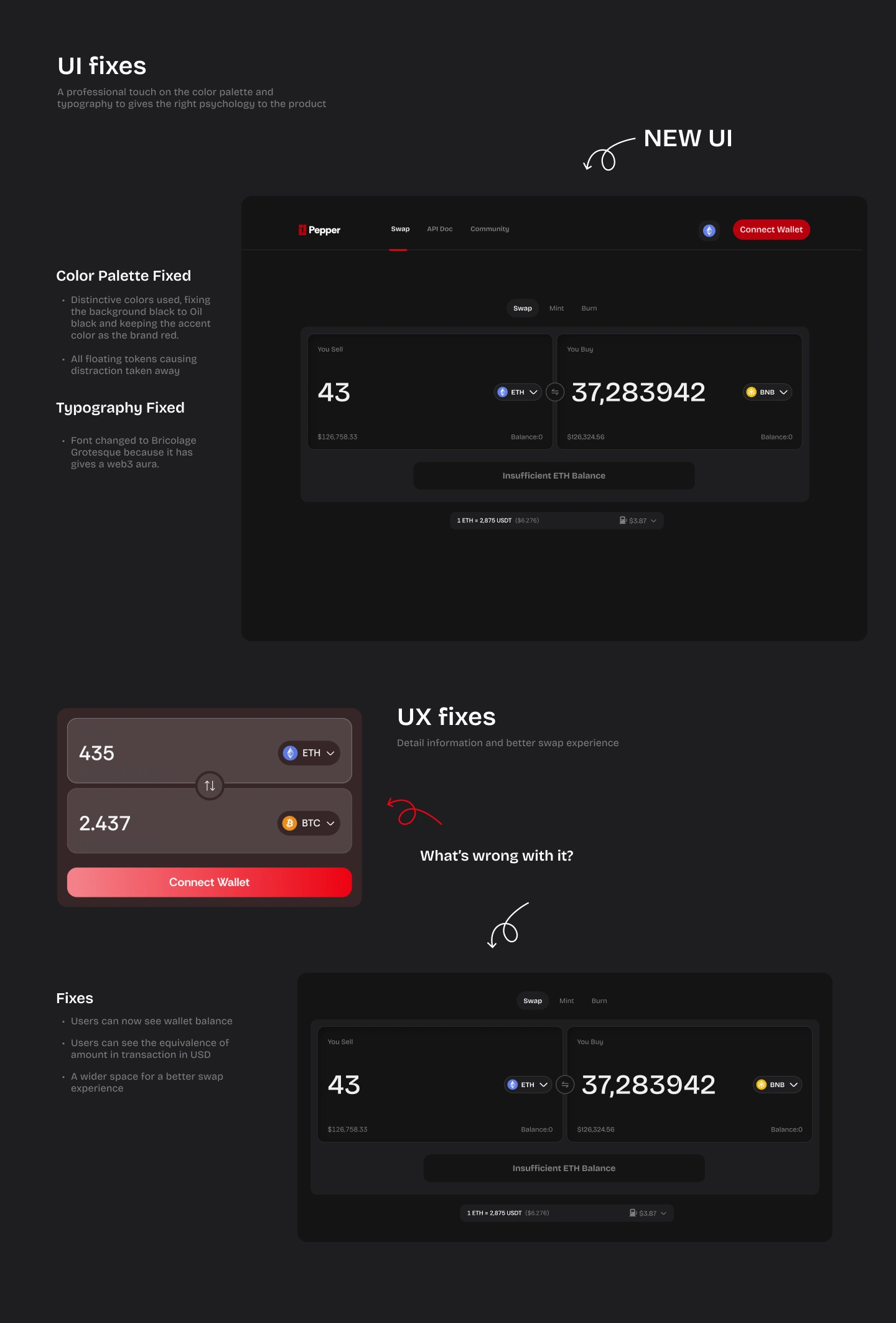 Designed the UX/UI for Pepper, a Web3 swap platform crafted smooth wallet flows, multi-chain swaps, and a scalable design system for dev handoff.