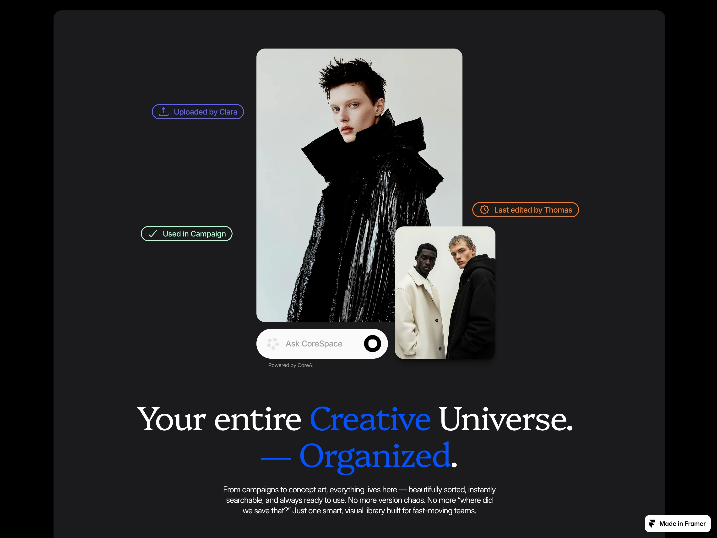 A creative platform concept designed to help teams manage, align, and scale their brand assets — combining the clarity of a Digital Asset Management system with the elegance of a creative toolkit.
