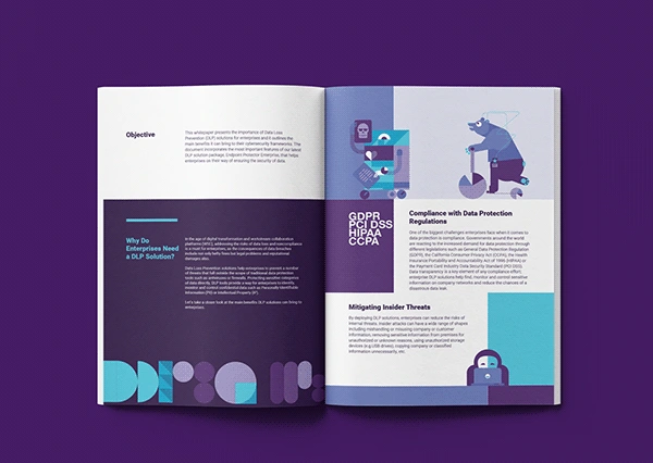 This project features a clean and structured white paper design for Endpoint Protector, a leading data loss prevention (DLP) solution. The layout balances clarity and visual hierarchy, ensuring complex cybersecurity topics are presented in an engaging and digestible format. With a focus on typography, infographics, and brand consistency, the design enhances readability while maintaining a professional aesthetic.