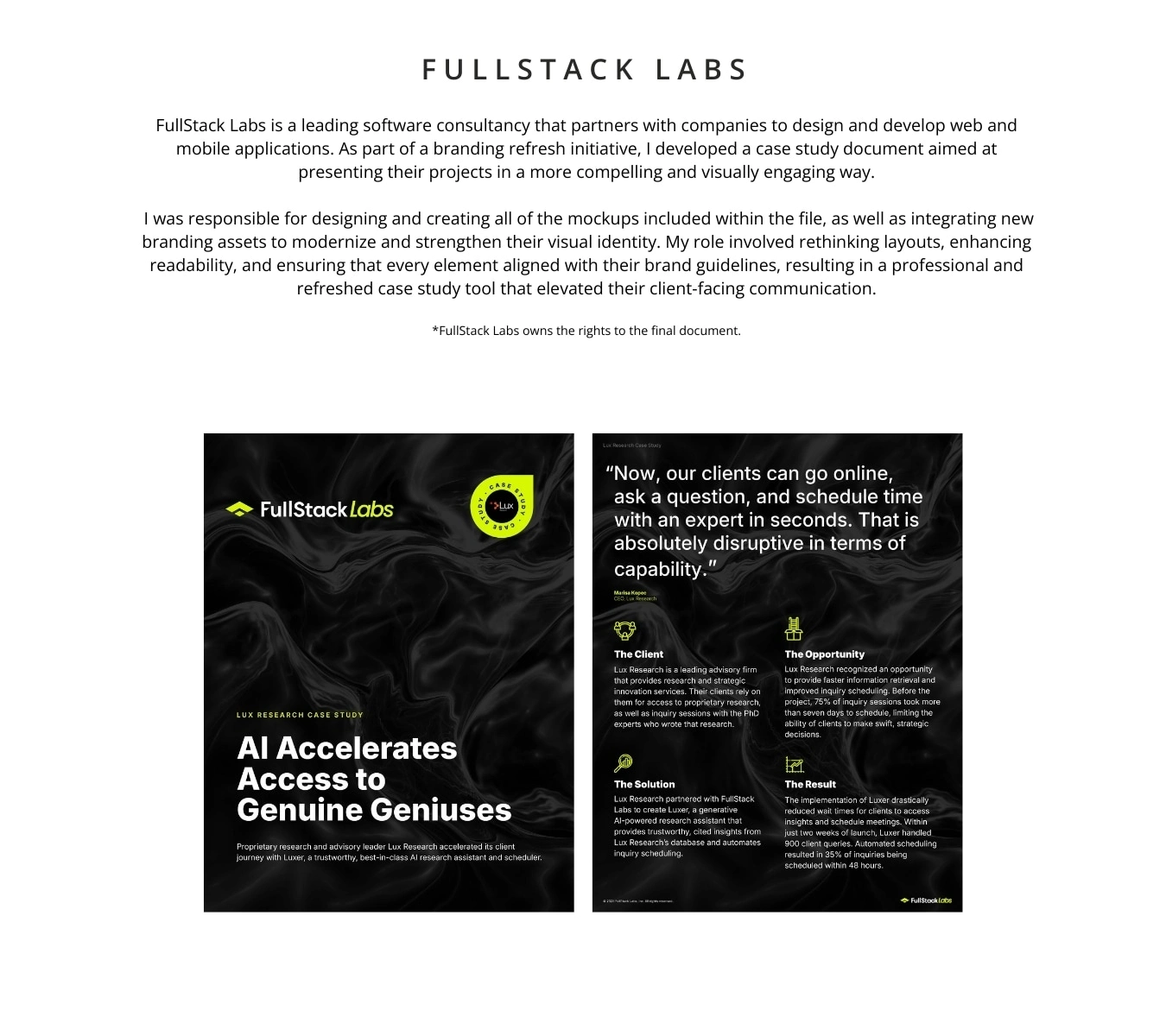 Redesigned case studies improved communication and trust; clients saw them as modern, honest, and to the point, driving more signings with FullStack Labs.