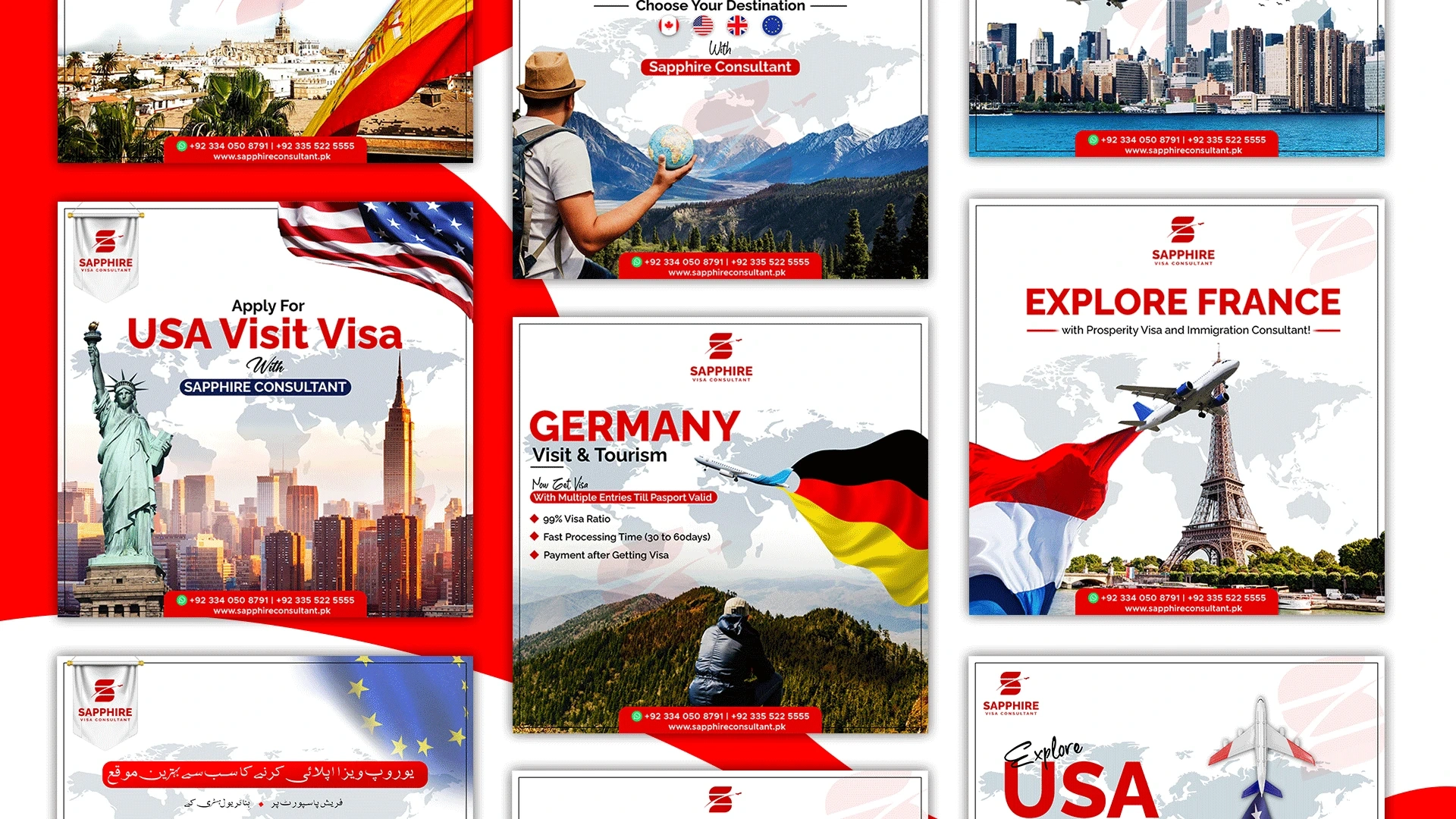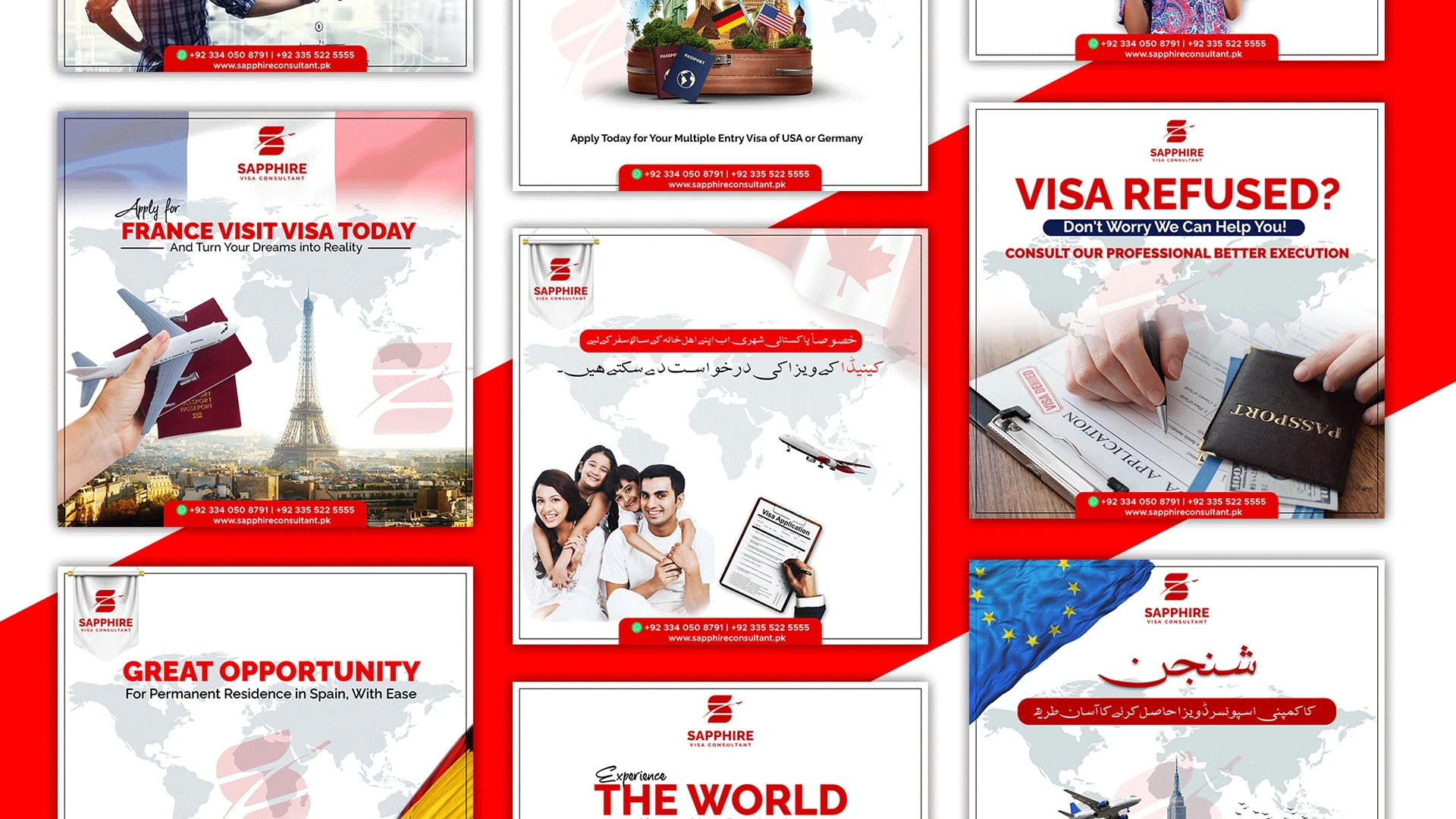 Social media post designs for a Visa consultant company.