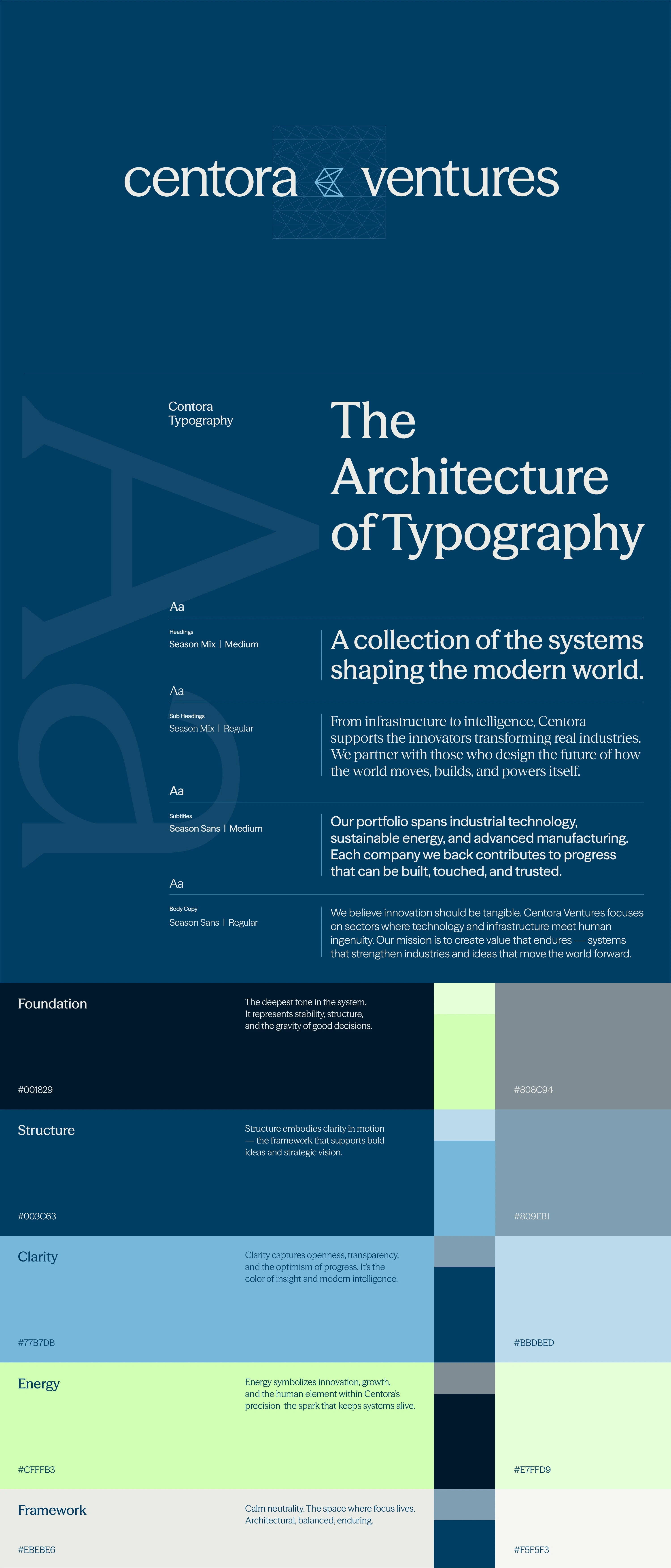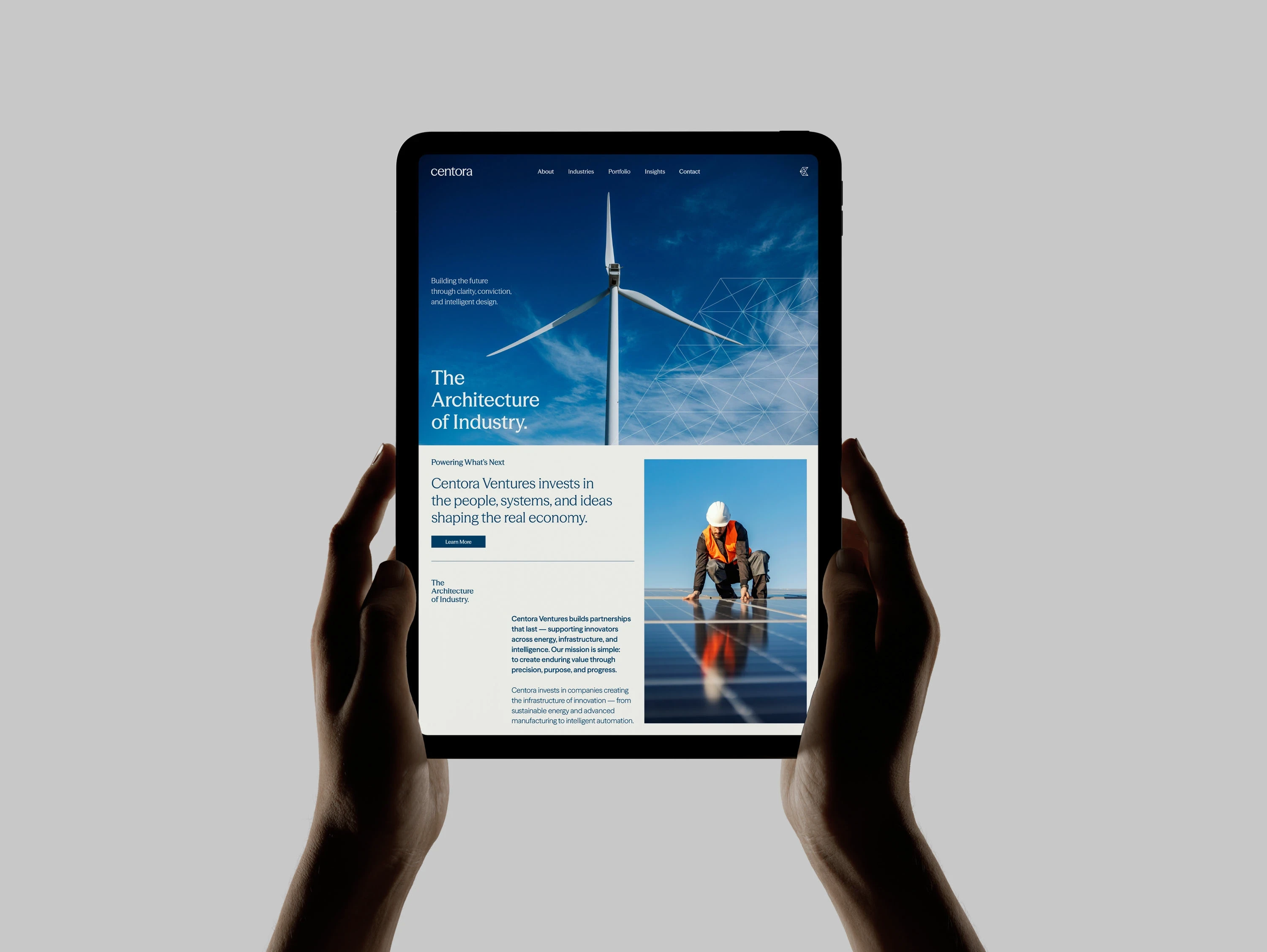 Centora invests in the systems, technologies, and people shaping the next industrial era. The goal was to create a brand that feels engineered, not decorated.