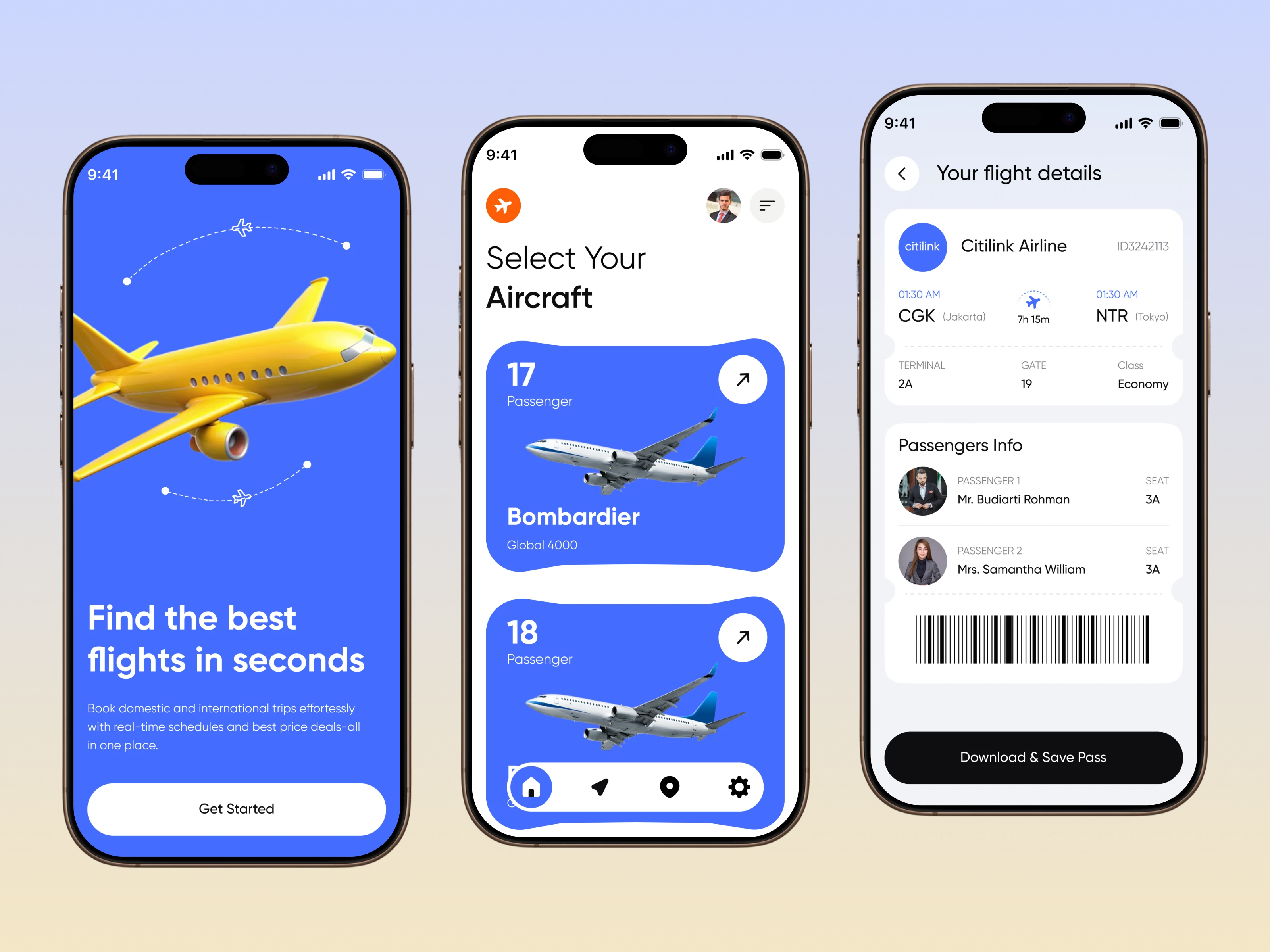 "Explore our AI Flight Booking Mobile App design, offering a seamless and intuitive user experience. With smart search, real-time flight updates, and personalized recommendations, this modern UI/UX concept simplifies travel planning, ensuring fast, secure, and hassle-free bookings with an elegant, user-friendly interface."