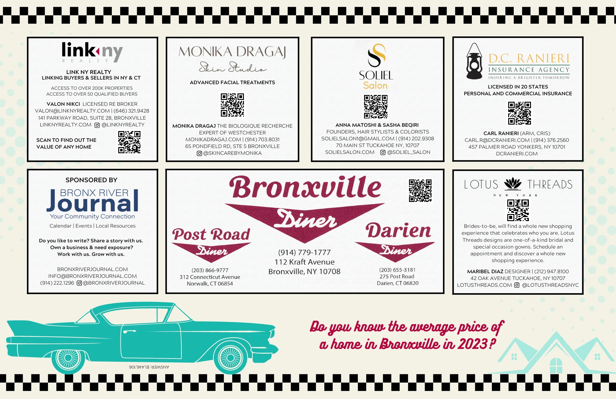 Created using Canva, Adobe Indesign & Adobe Illustrator. Used local sponsored businesses to create a placemat in 2023 for the Bronxville, NY Diner.