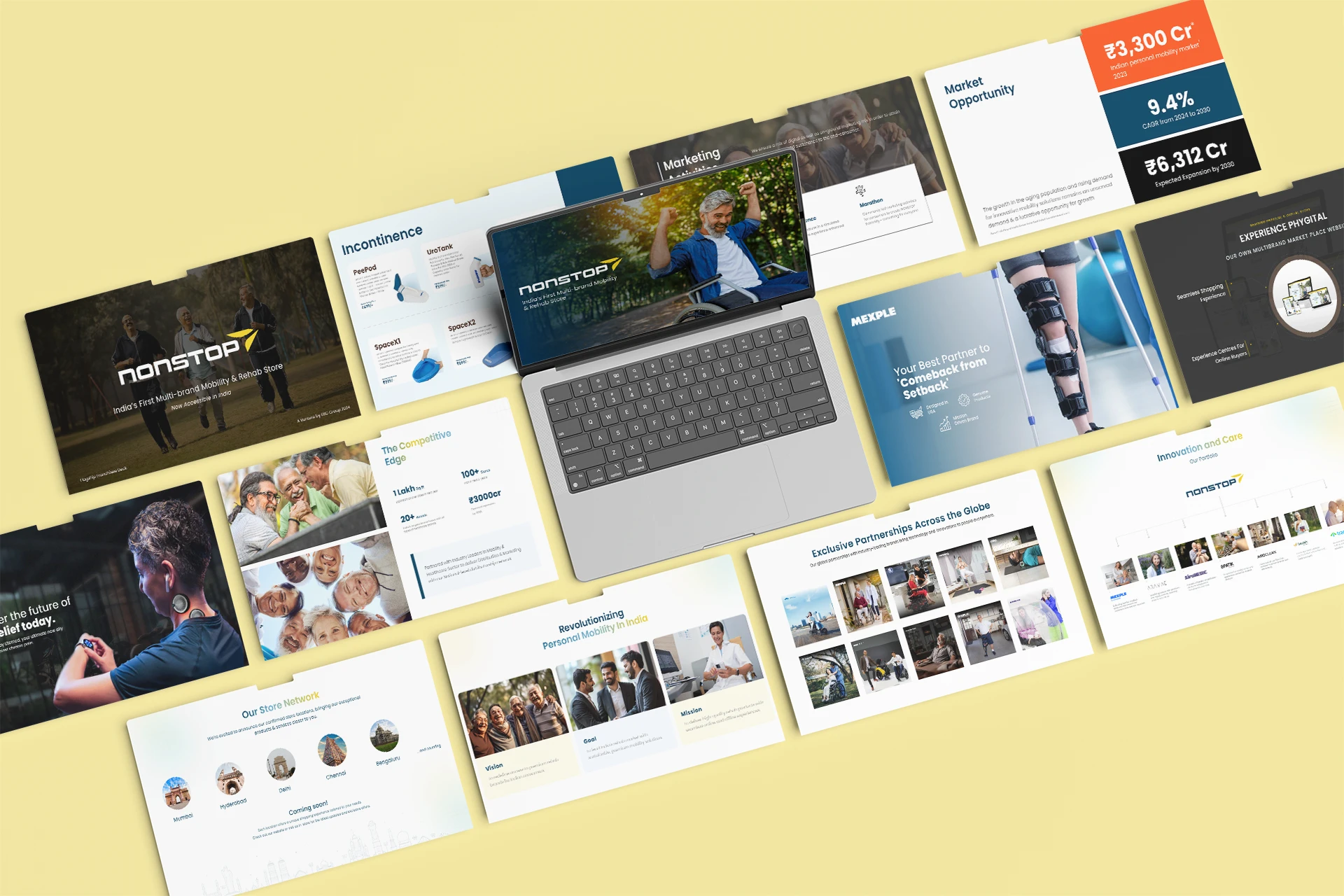 Designed a high-impact investor pitch deck for a fast-growing D2C brand in the urban mobility space. The objective was to communicate the company’s business model, traction, and growth potential to early-stage investors. I streamlined complex operational and logistics data into clear visuals and crafted a modern, energetic visual language that reflected the brand’s dynamic identity. The result was a confident, investor-ready deck that helped the team position themselves as a serious player in the space.
