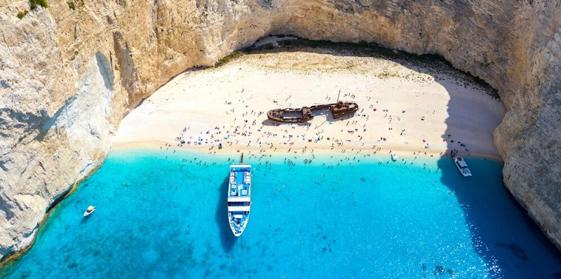Also known as Shipwreck beach and located on the coast of Zakynthos, Navagio beach is one with quite a story. The Navagio owes its name to the shipwreck on the beach.