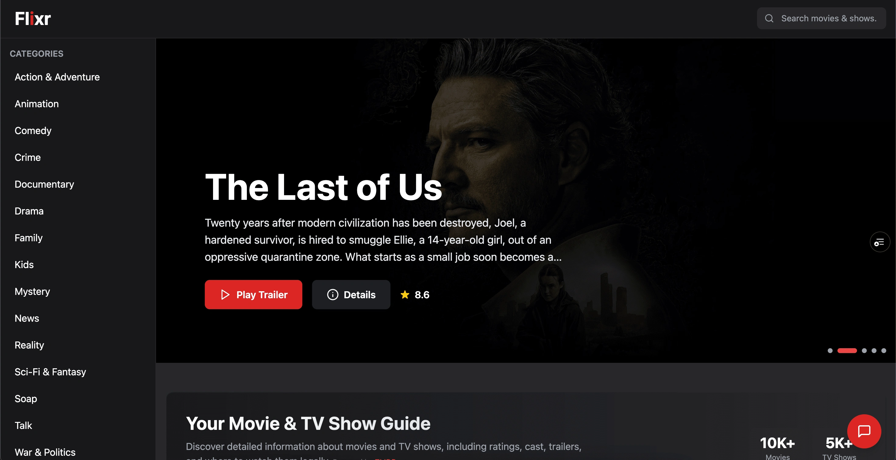 Flixr is a modern Movie & TV Catalogue app to make finding movies and tv shows easy, integrated with AI.