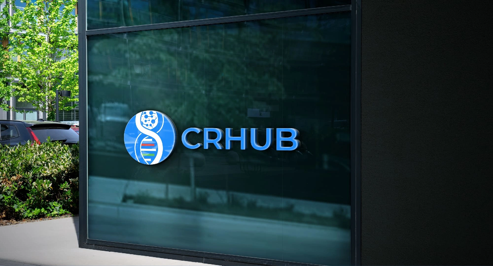 The CR Hub logo effectively represents healthcare, research, and career growth with a modern, inclusive design, reinforcing its global and professional identity