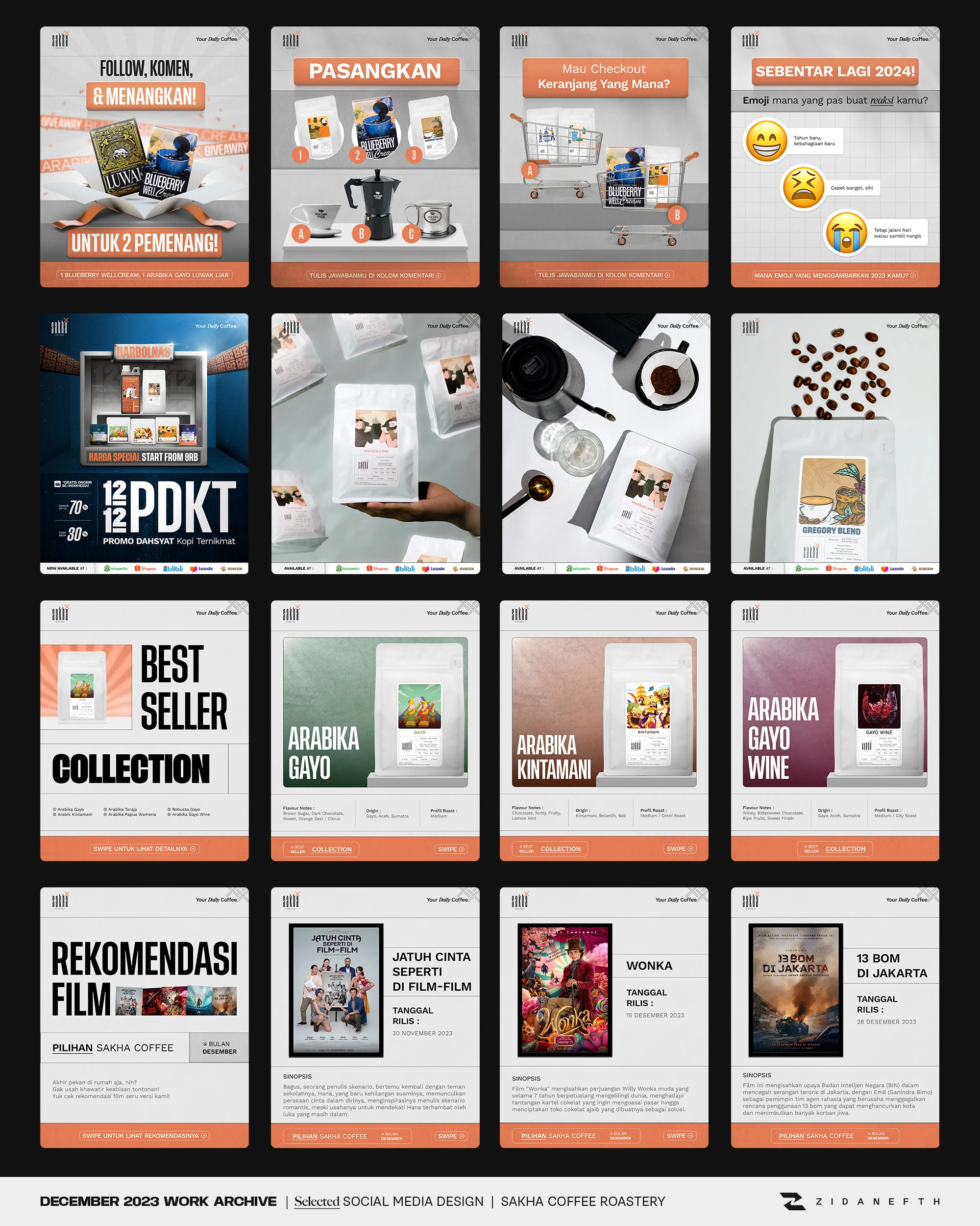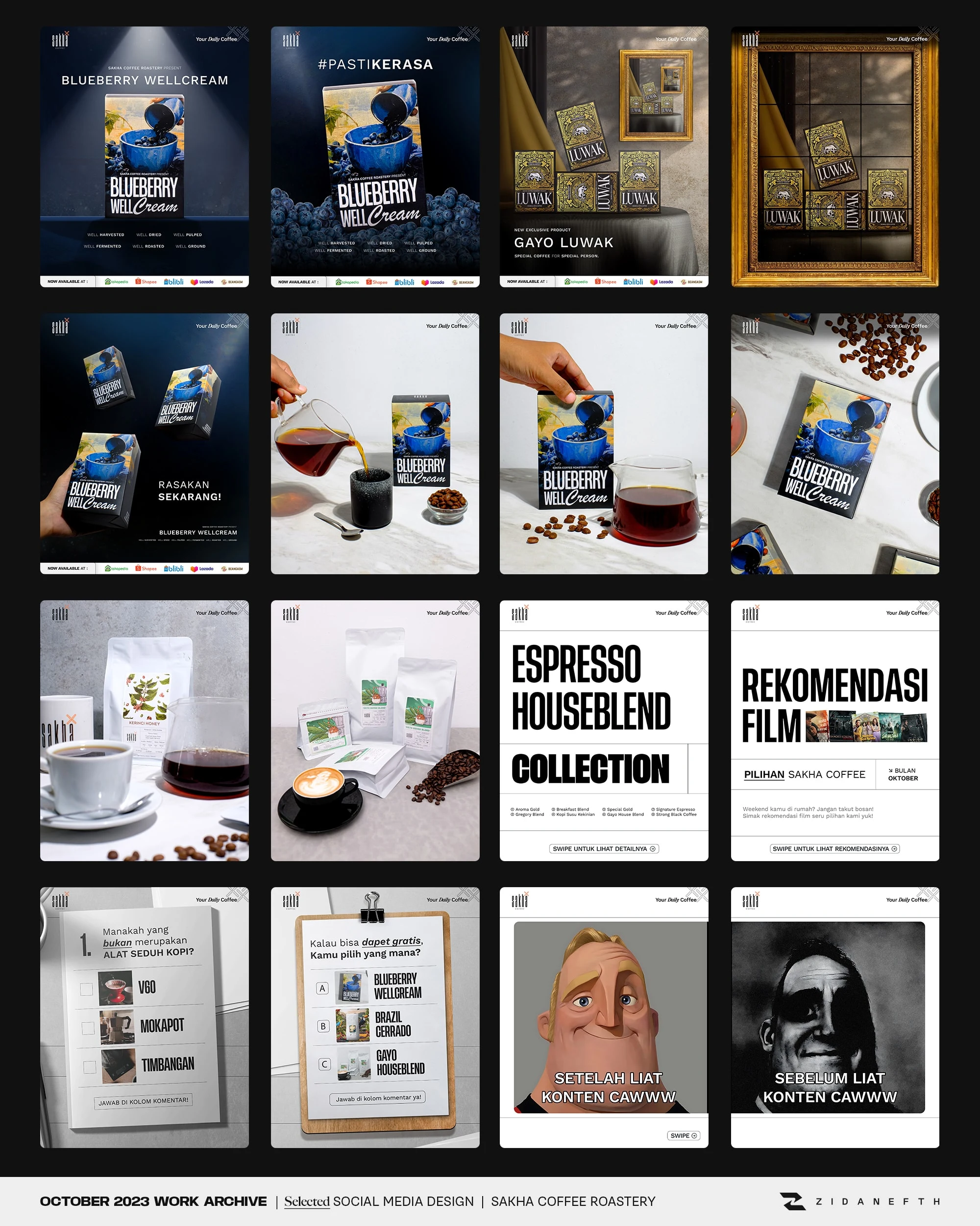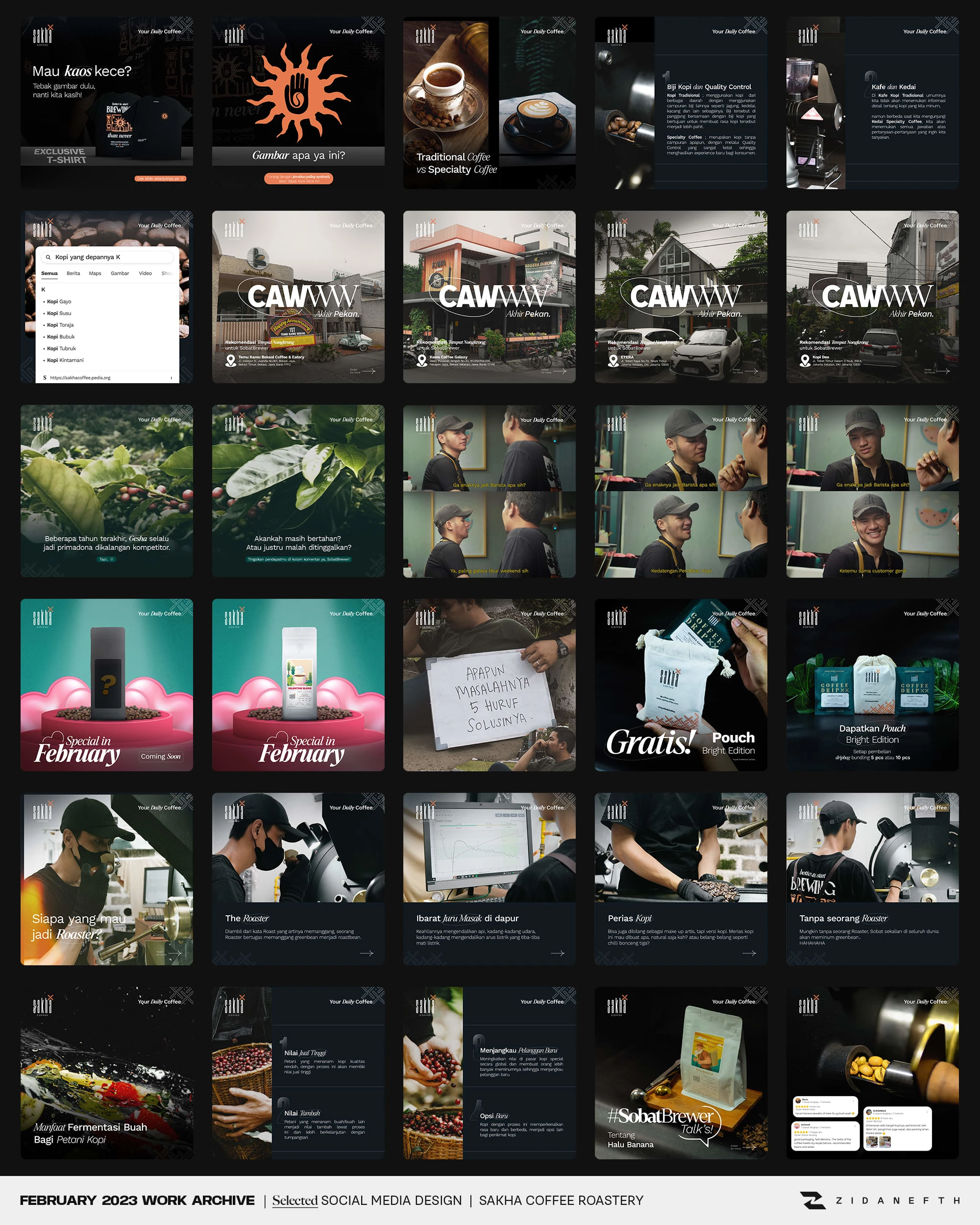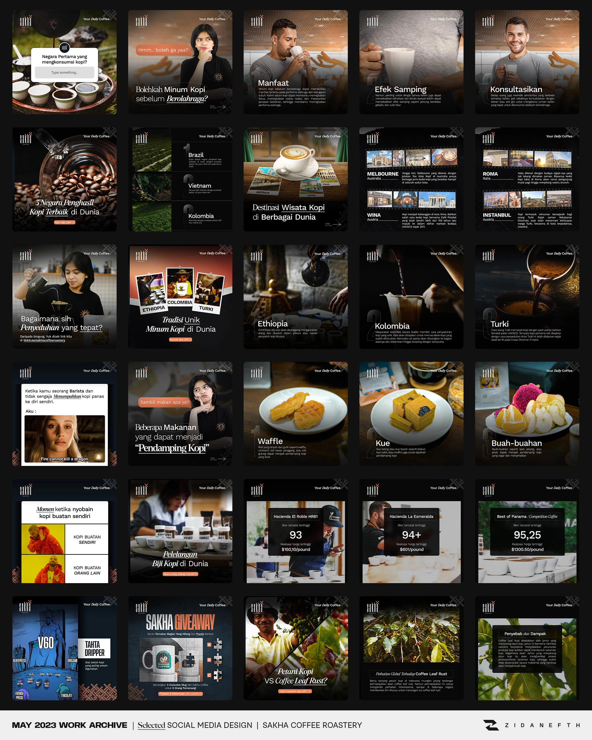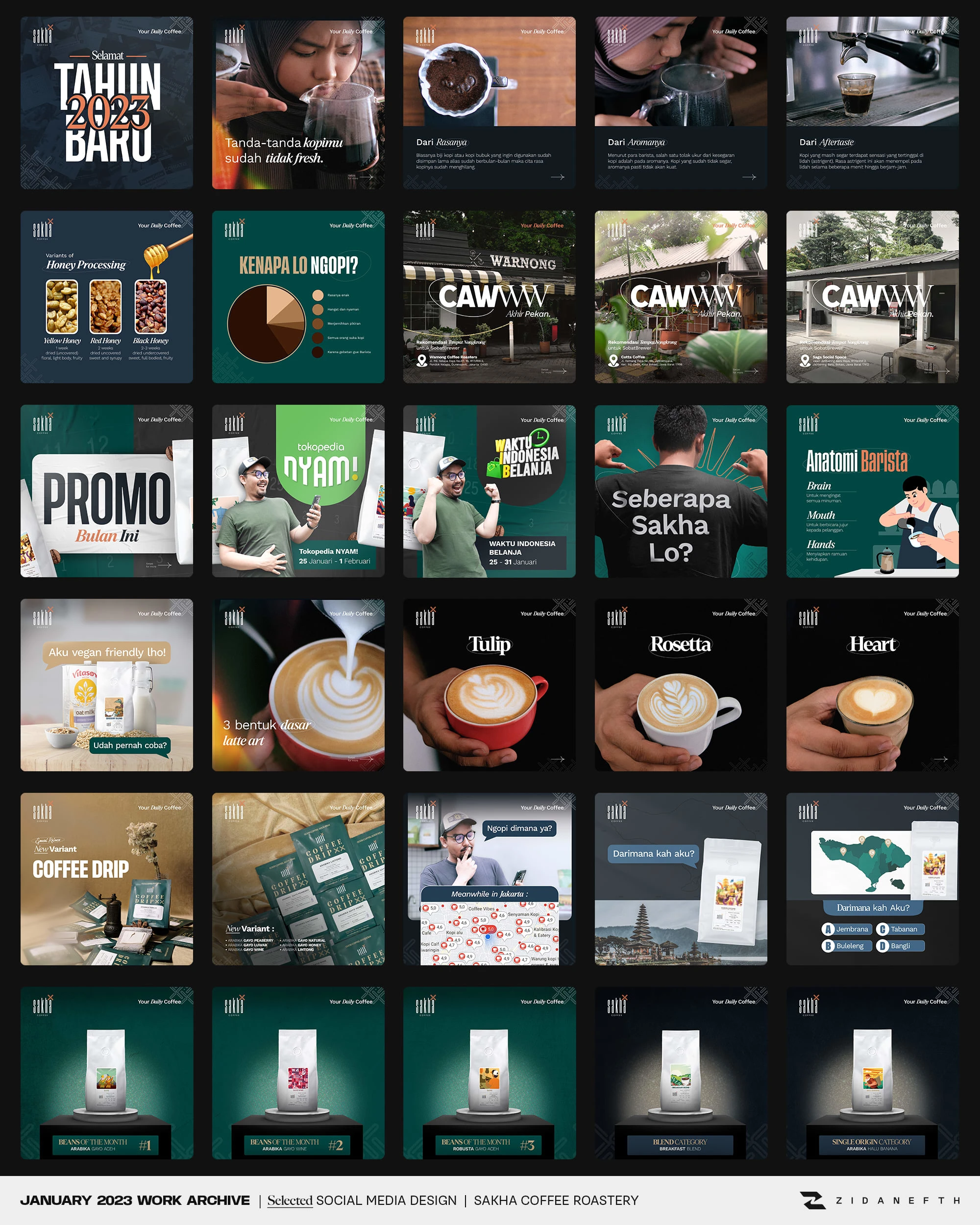 Crafted engaging social media content for Sakha Coffee. Designed Instagram feeds and TikTok layouts to boost audience interaction and elevate F&B branding.