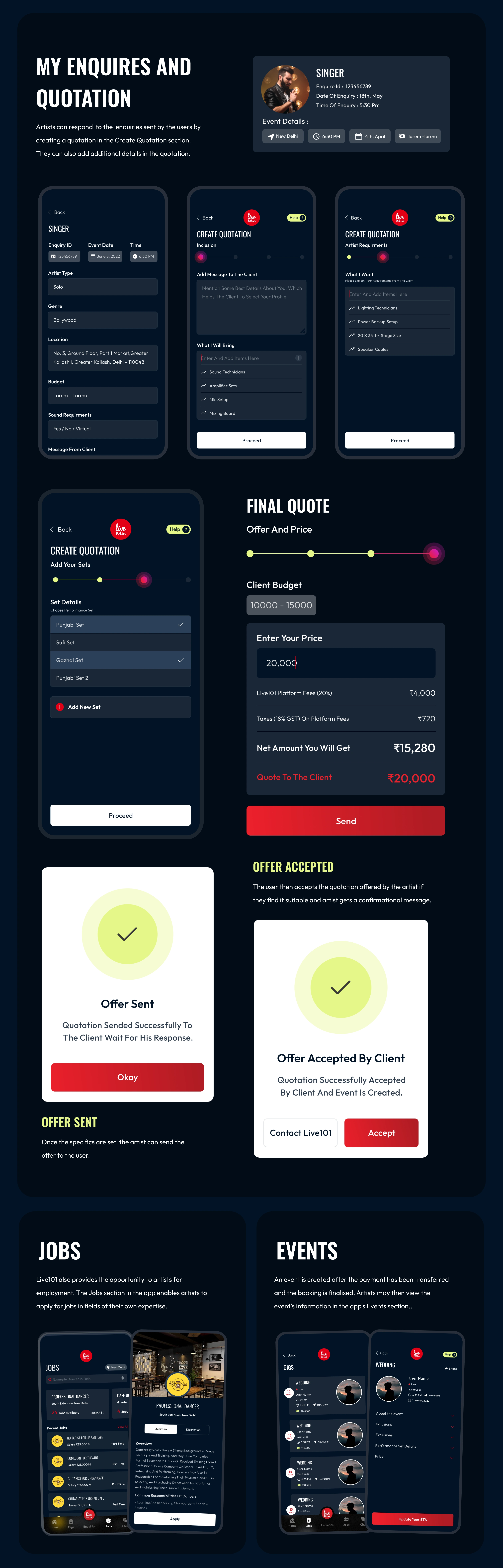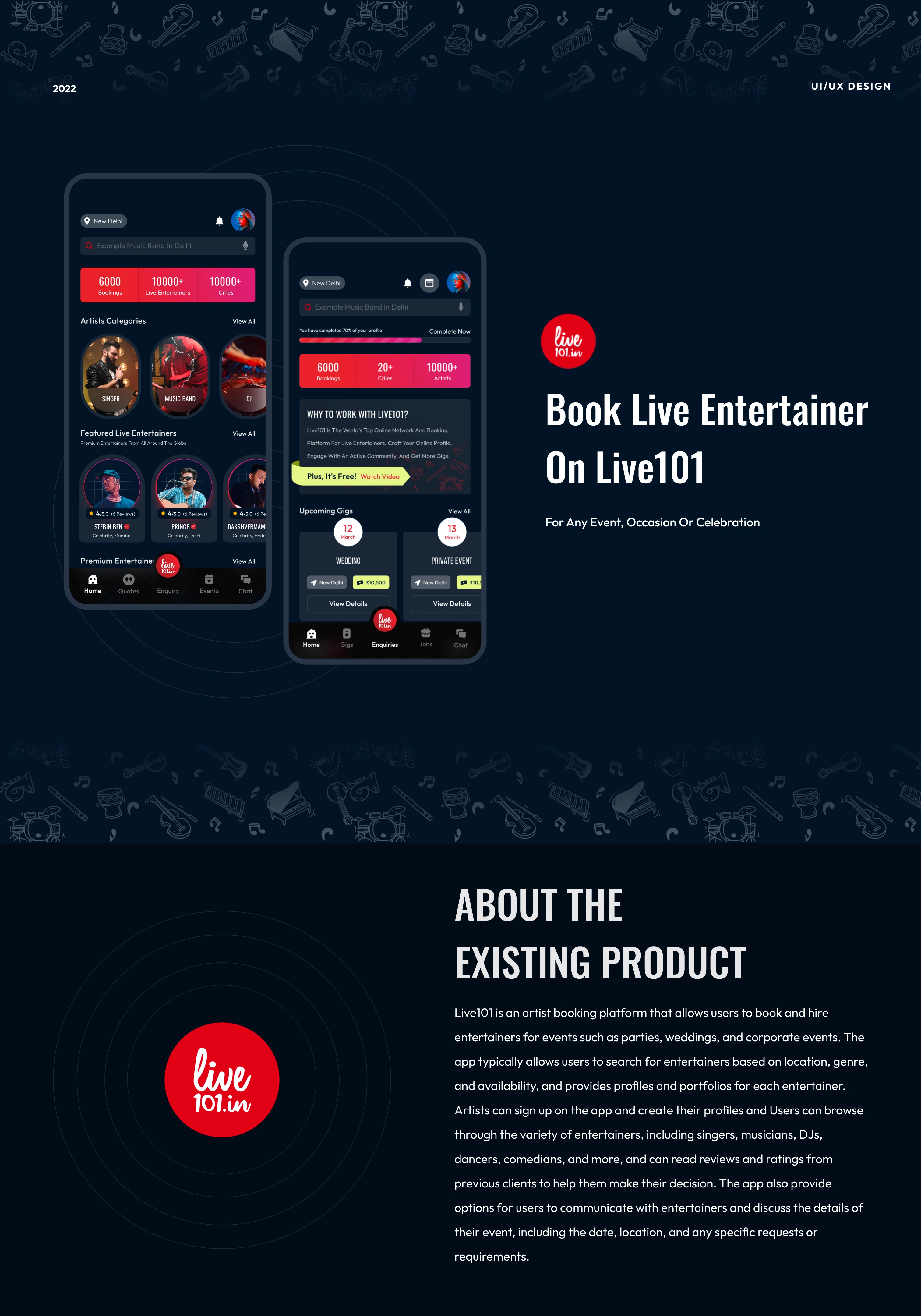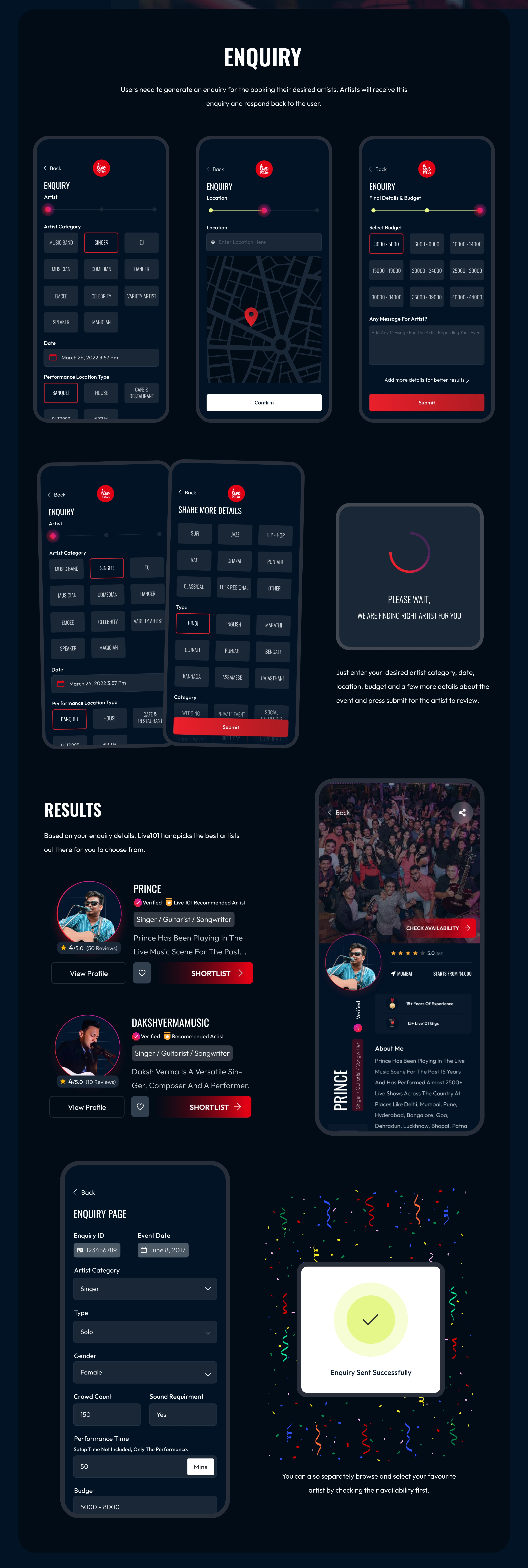 End-to-end user journey ideation and design done for an artist booking platform working with 10,000+ Indian artists. Helping them in getting quality gigs and c…
