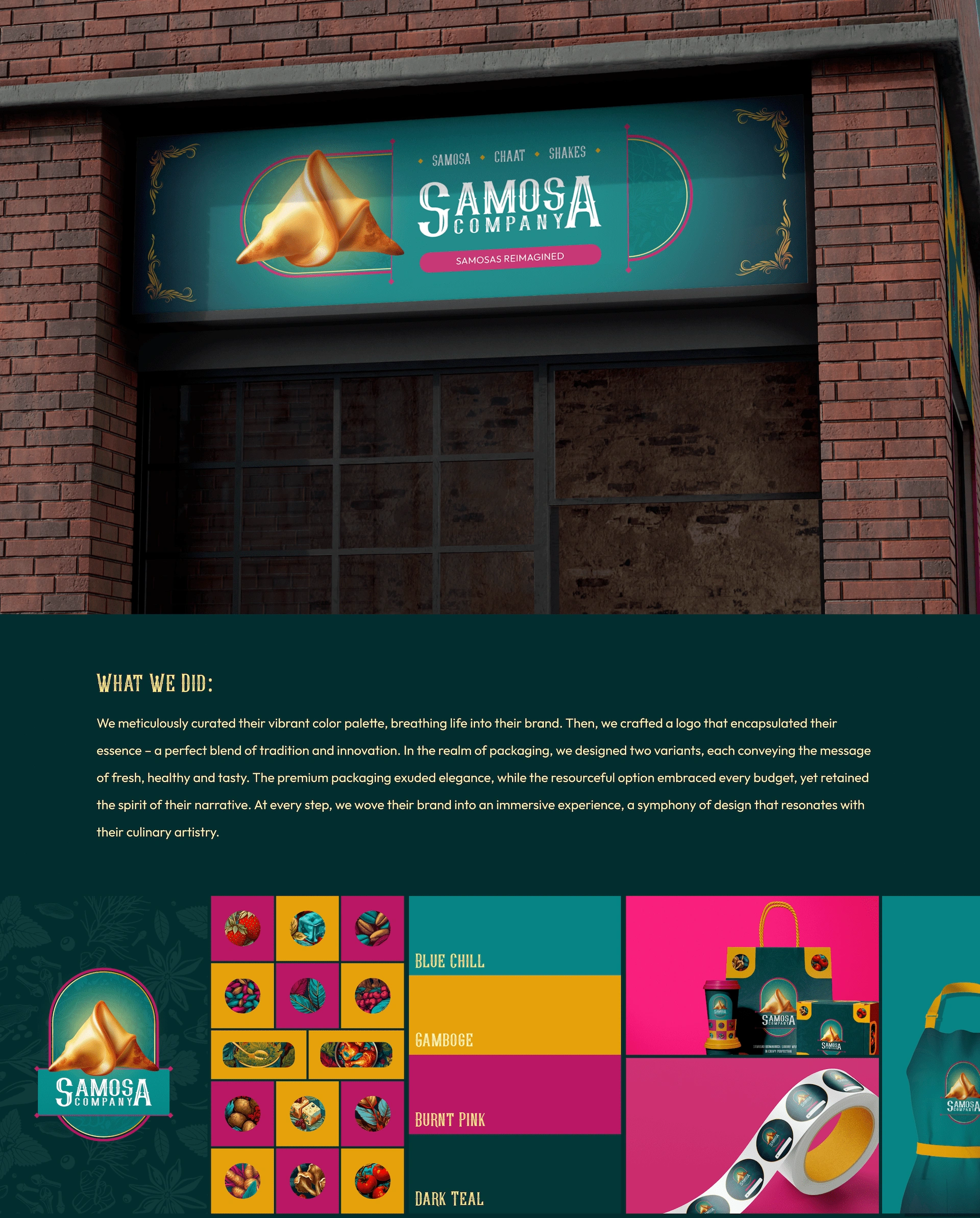 Complete branding design done for Samosa Company, a visionary snacks eatery based in Pondicherry that tantalizes taste buds with its exquisite offerings.