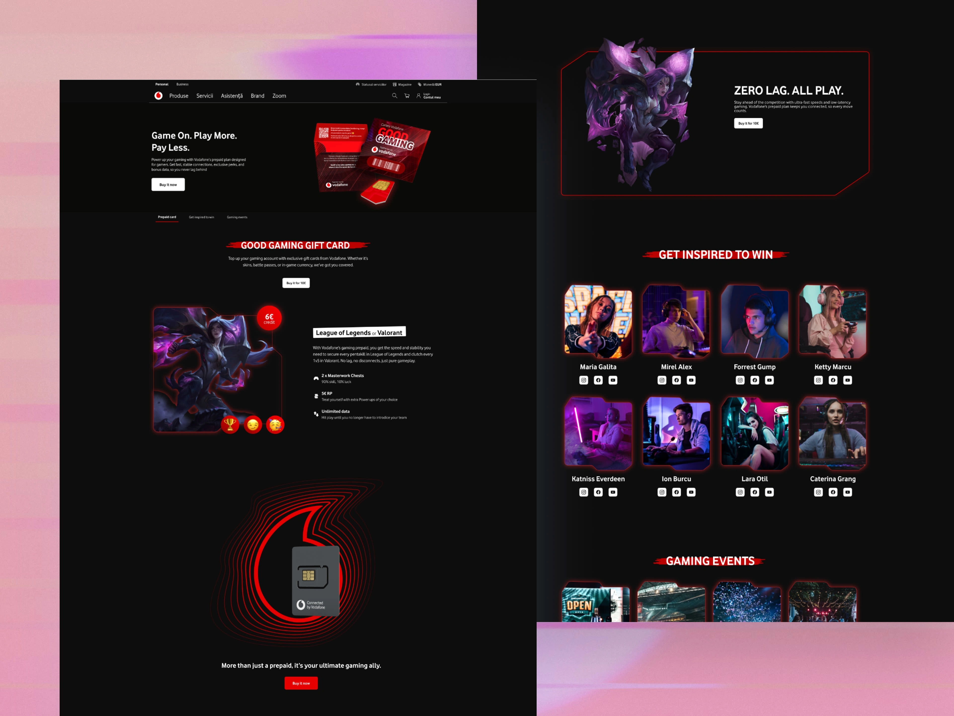 This page was designed to promote Vodafone’s gaming ecosystem, combining connectivity, gaming rewards, and exclusive content into a single experience. The goal was to speak directly to gamers and position Vodafone as more than a telecom provider: a gaming partner.