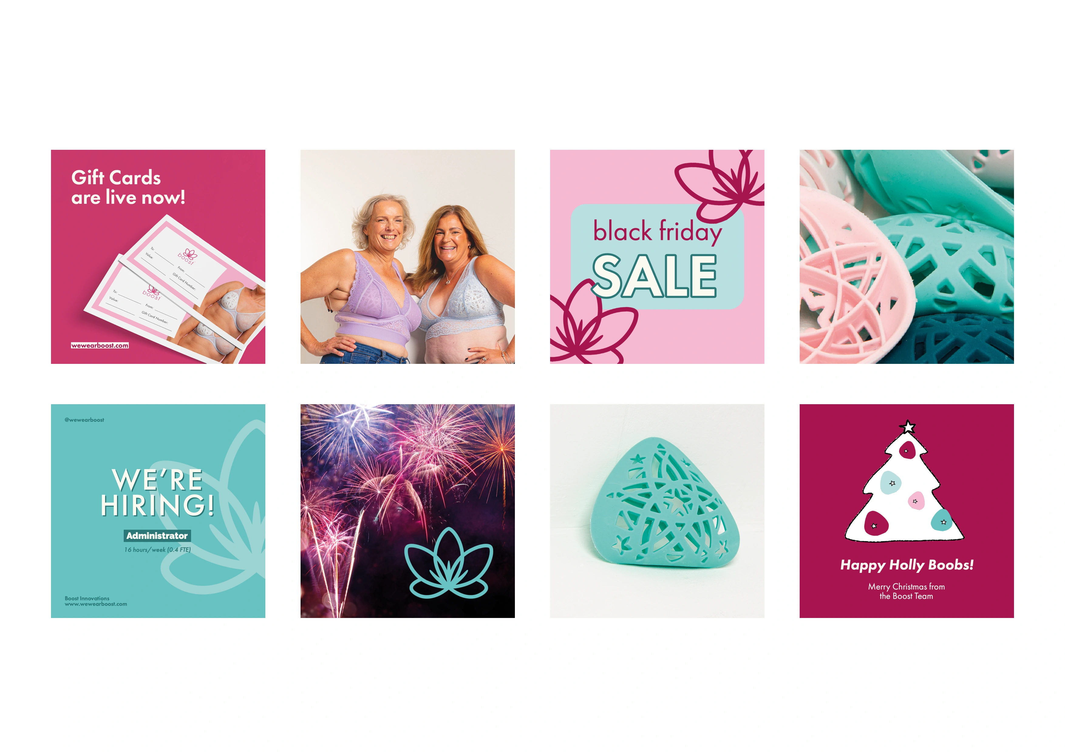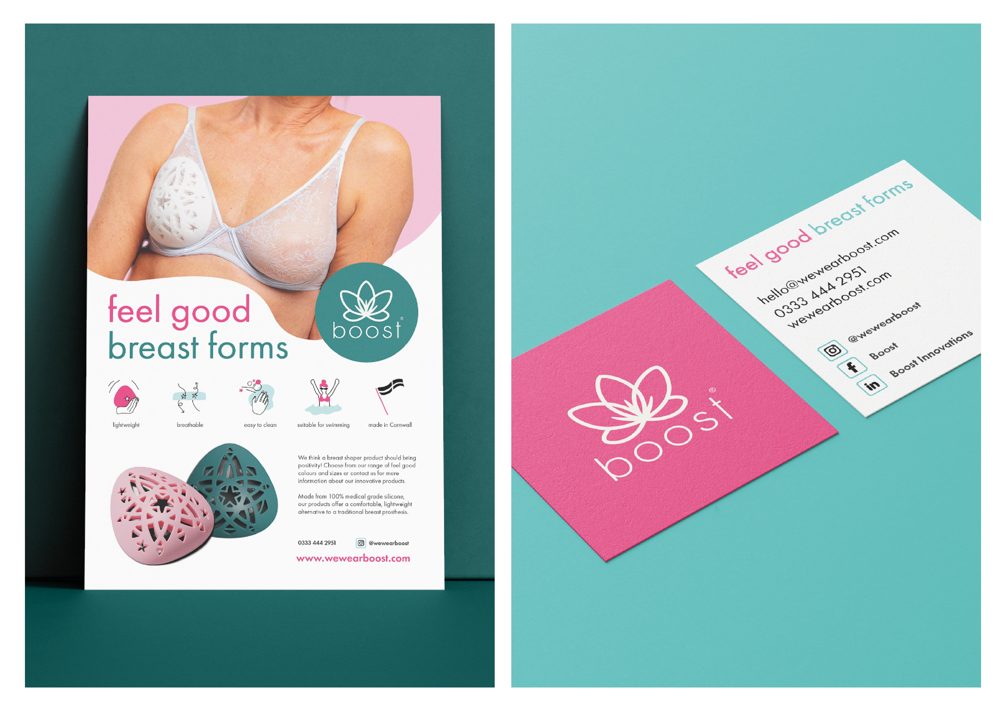 Transformed Boost Innovations with a brand identity. Designed graphics, business materials, and led art direction for a photoshoot of their products.