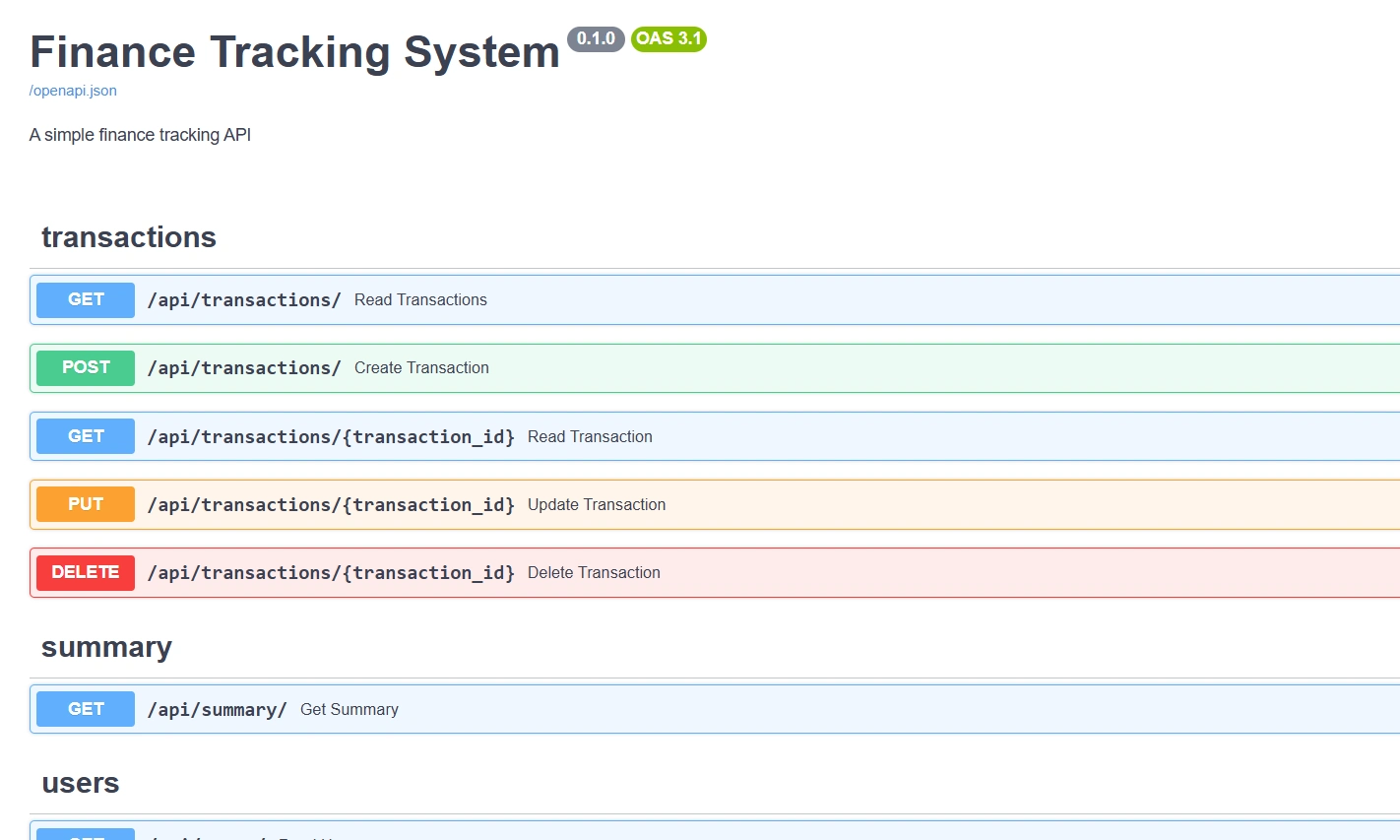 Finance Tracking API: Built with FastAPI, SQLAlchemy & Pydantic. Features modular architecture and automated Swagger UI docs. Deployed and live on Render.