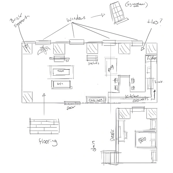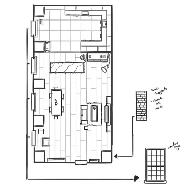 From all the country's and places I’ve visited in my travels, I’ve always loved old brickwork buildings, I’ve always found myself imagining how I would convert and use them huge rustic windows to light up an apartment/ event space. I took a weekend break to visit some family down in London and stayed in a studio apartment which used to be a dock warehouse, this visit is what inspired me to design my own space, with the idea of building it around these, beautiful exposed interior brick walls.