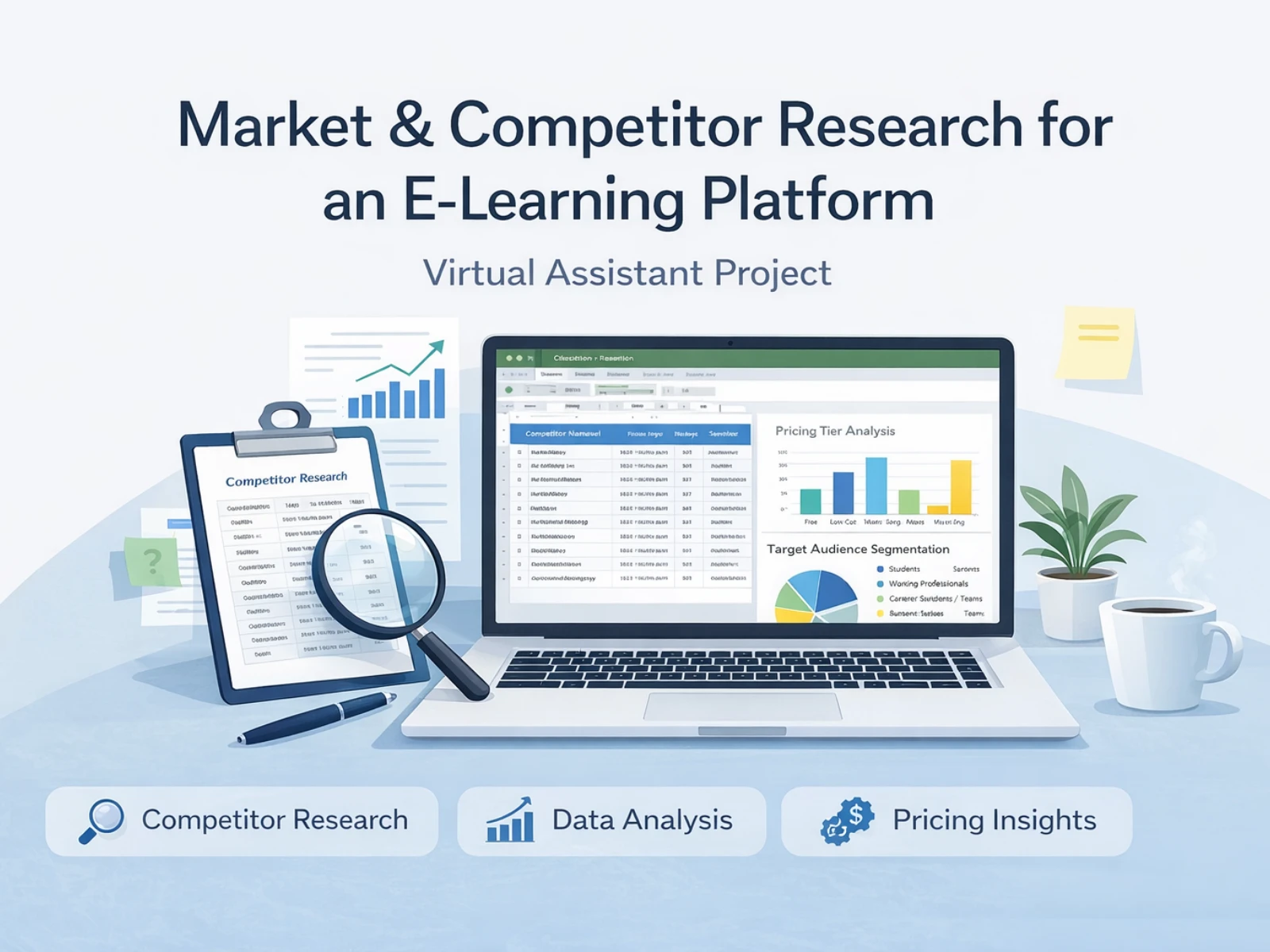 This case study showcases a Data-Focused Virtual Assistant project where I conducted structured market and competitor research for an e-learning business.
