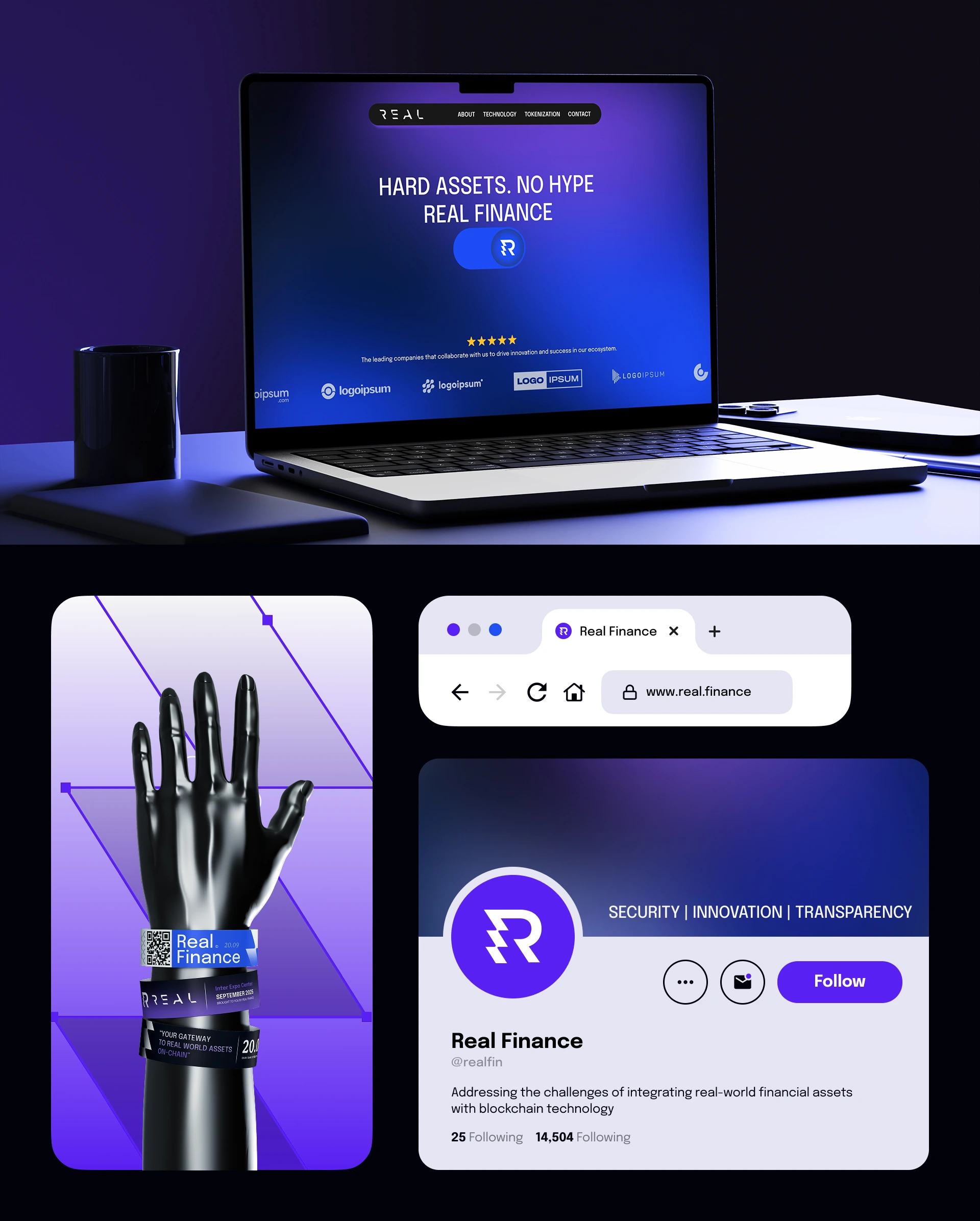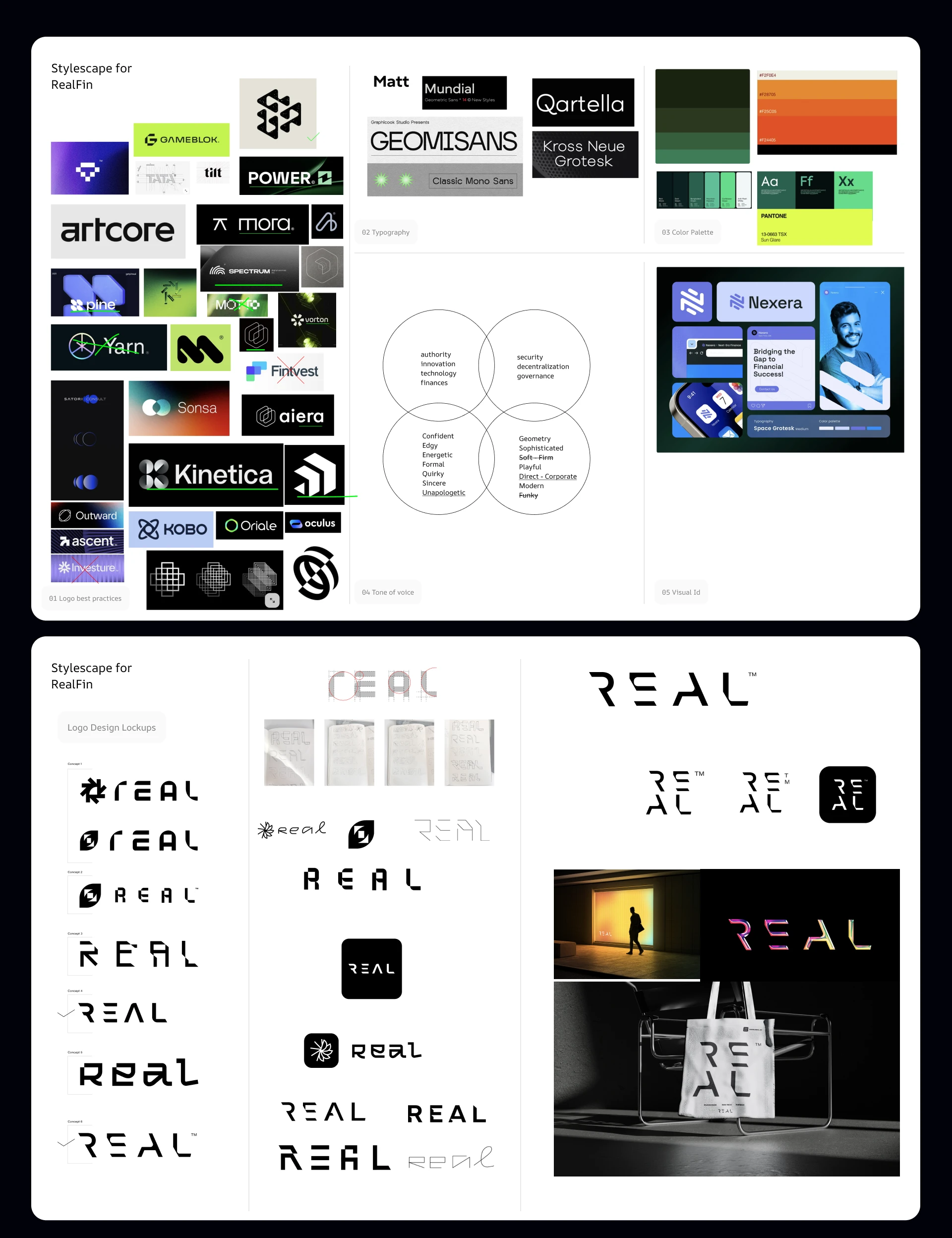 From there, we built a visual direction deck—analyzing the best practices in logo design, not just in blockchain, but across timeless, trusted brands. We explored multiple directions, narrowing down to a few that felt bold enough to carry the Real name forward.