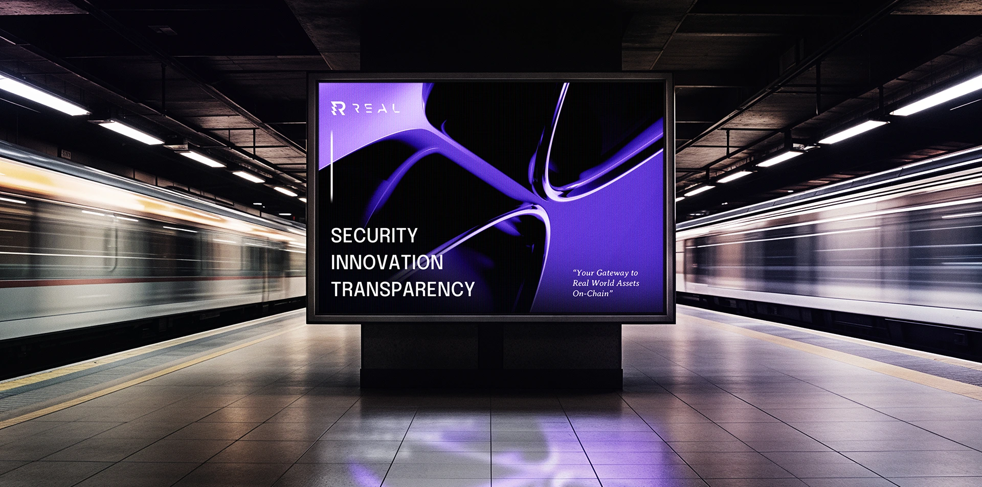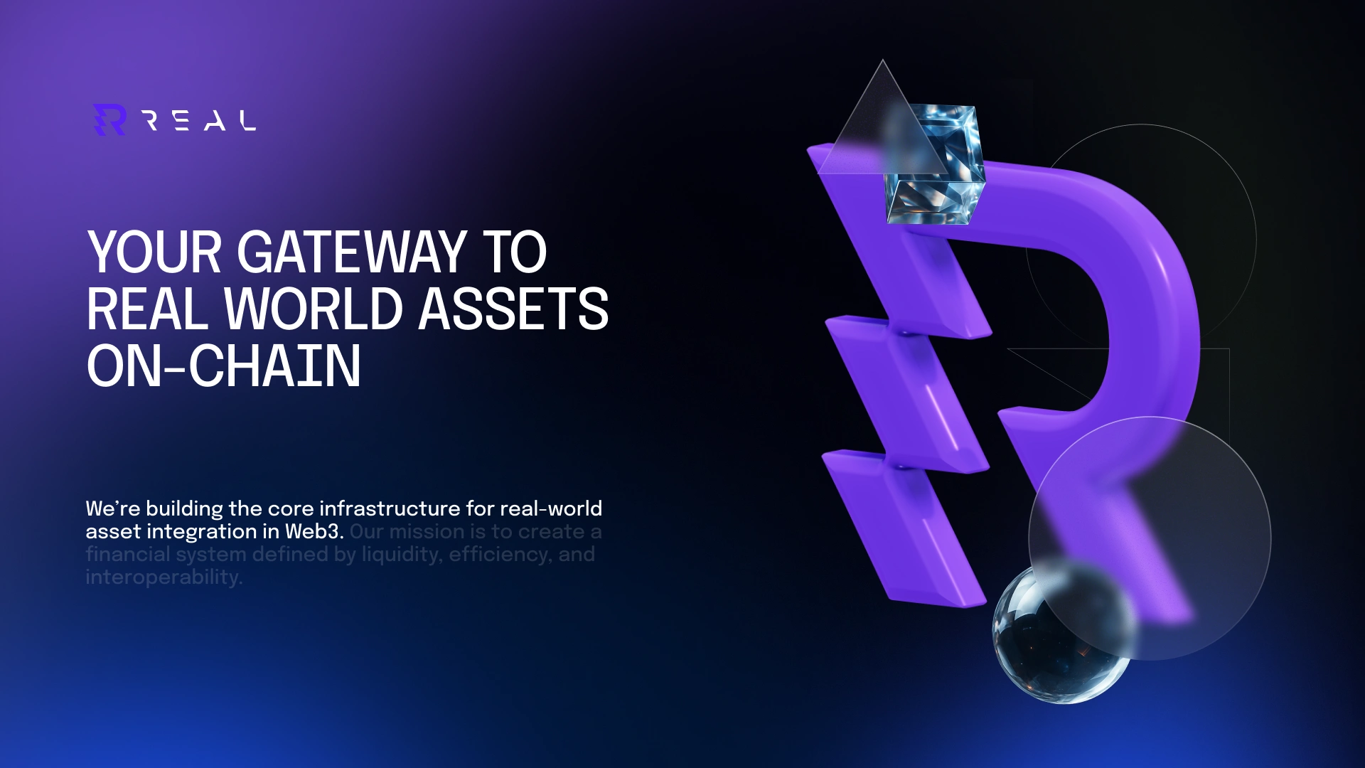 That’s how the "R" icon was born. Inspired by the angular cuts of the custom typeface, we redesigned the leg of the R to reflect a transaction in motion—a seamless transfer of real-world assets into crypto.
