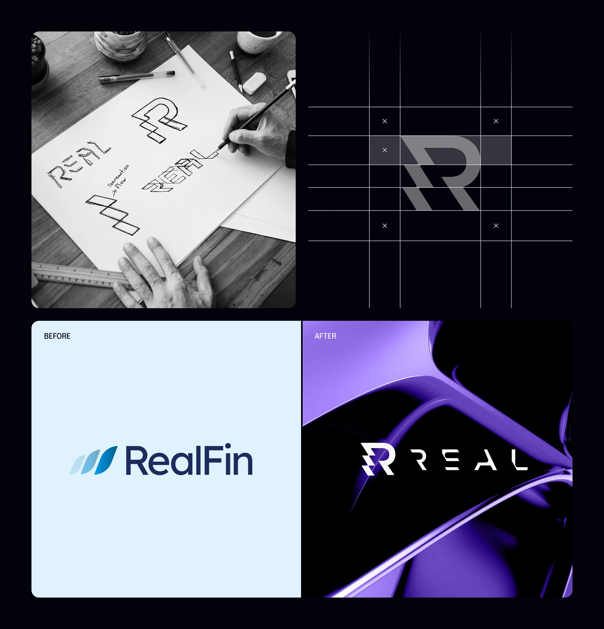 But once we started sketching, a unique direction emerged: a cut-out wordmark that almost challenged the readability of “REAL”—spacious, confident, a little rebellious.