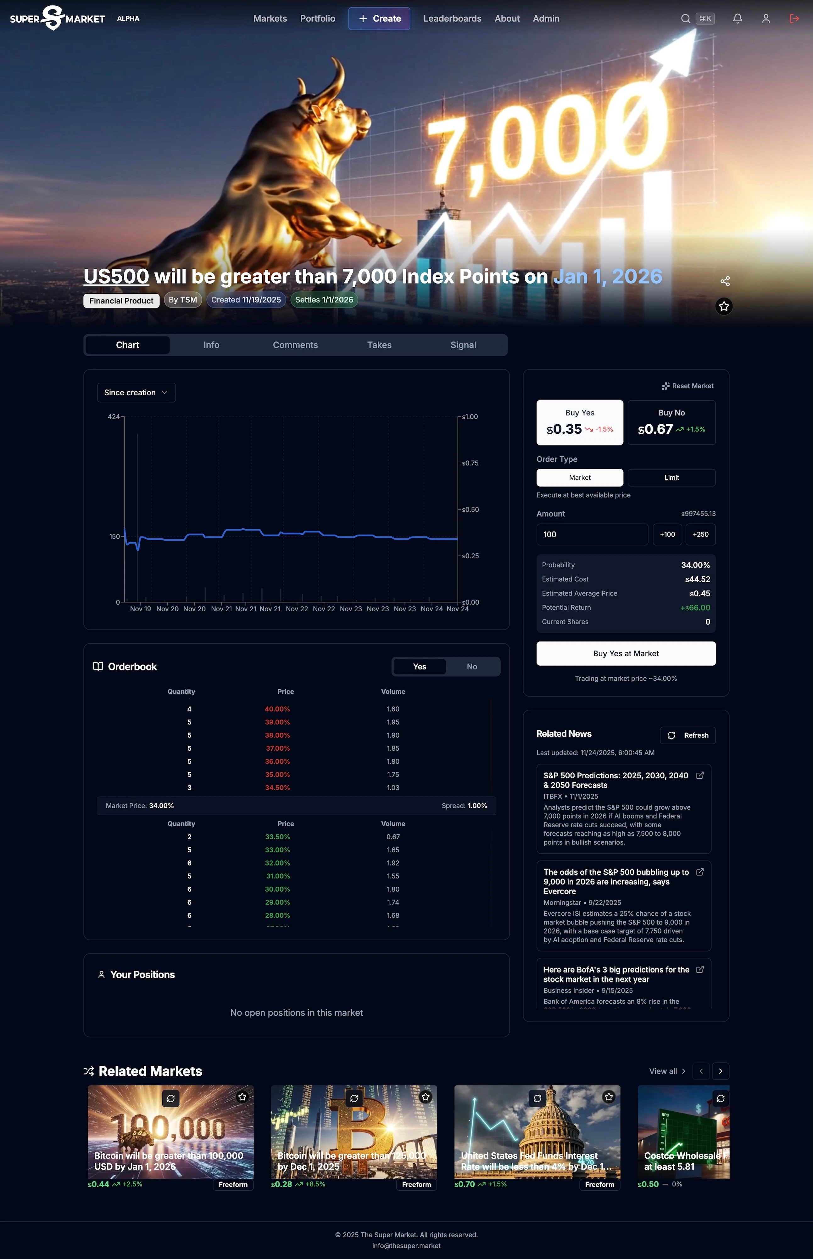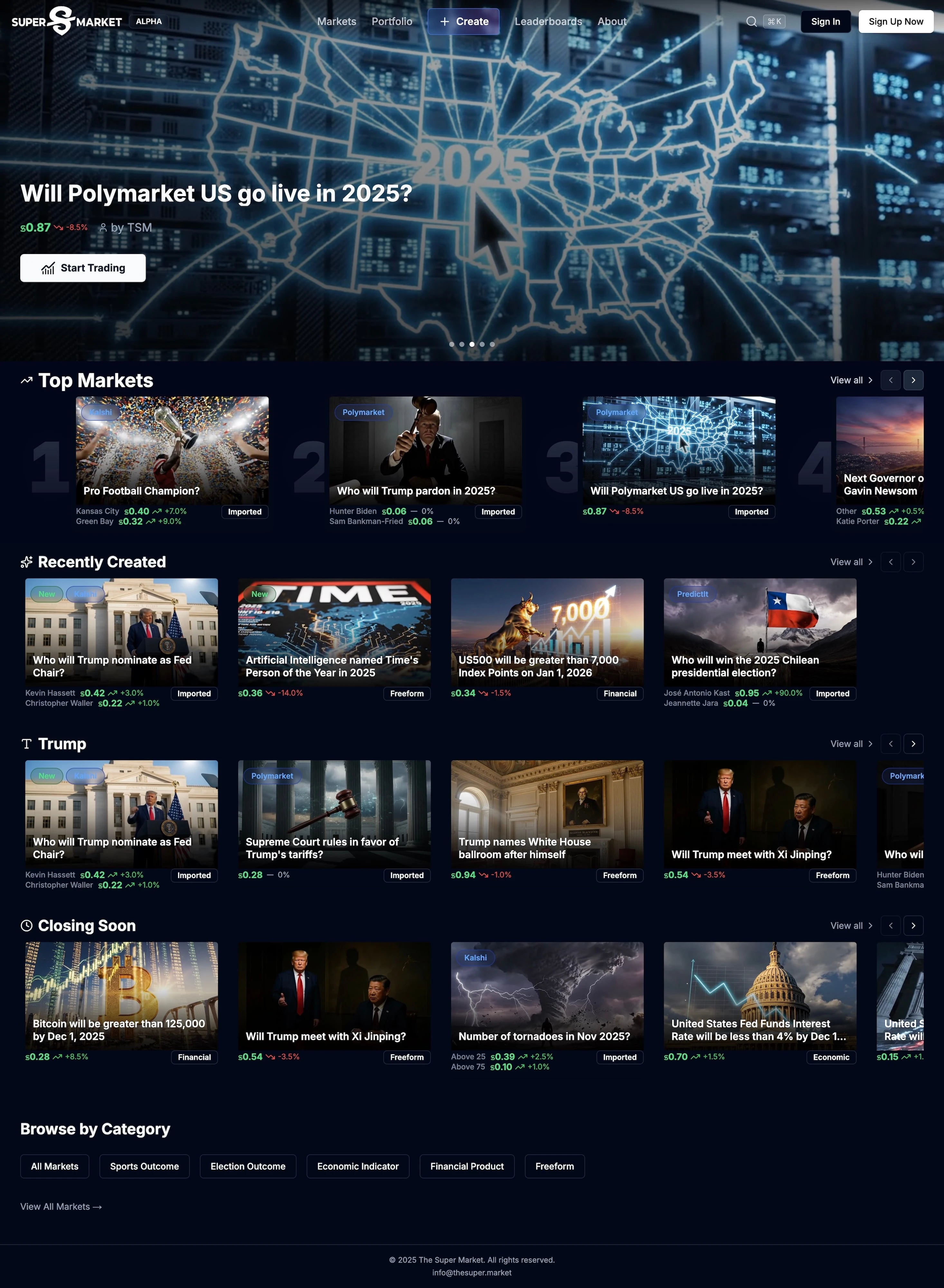Lead a team of 3-5 developers to build a prediction market, which allows users to create markets on any topic they'd like, and then to trade shares on the probabilities of the possible outcomes. A number of AI models are used to generate images, videos and settlement criteria for the markets. Various data provider APIs for sports, politics, economic data and more are integrated for outcome verification. Users can make purchases from the platform or from one another using Stripe.