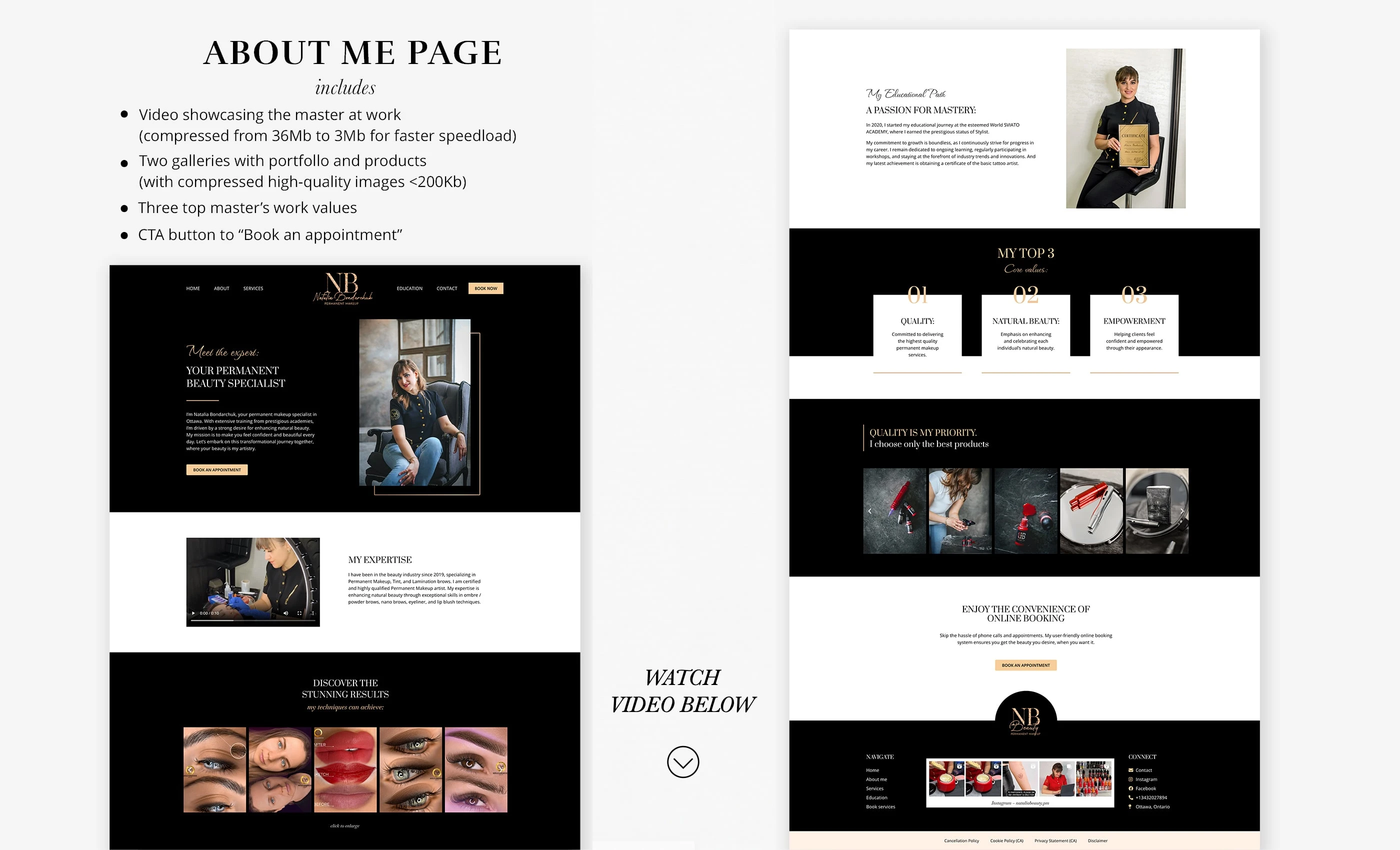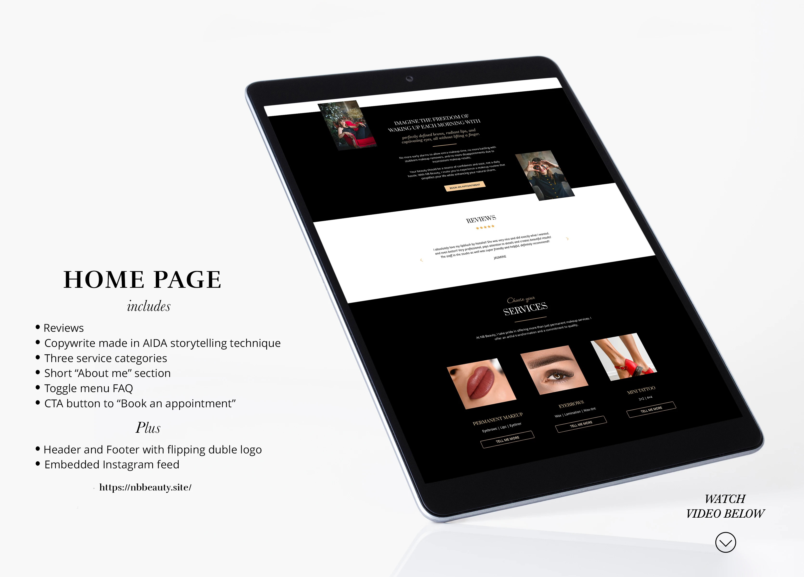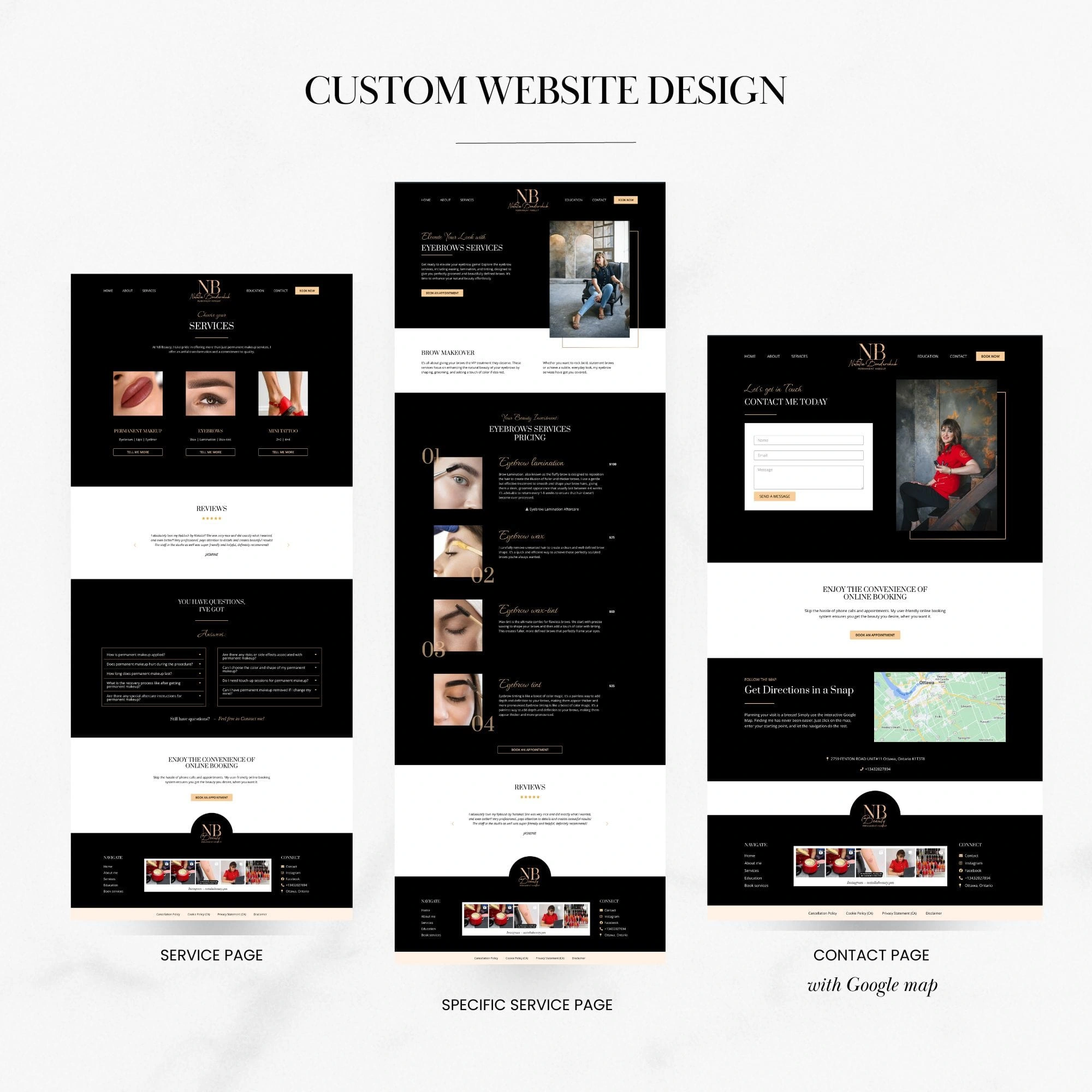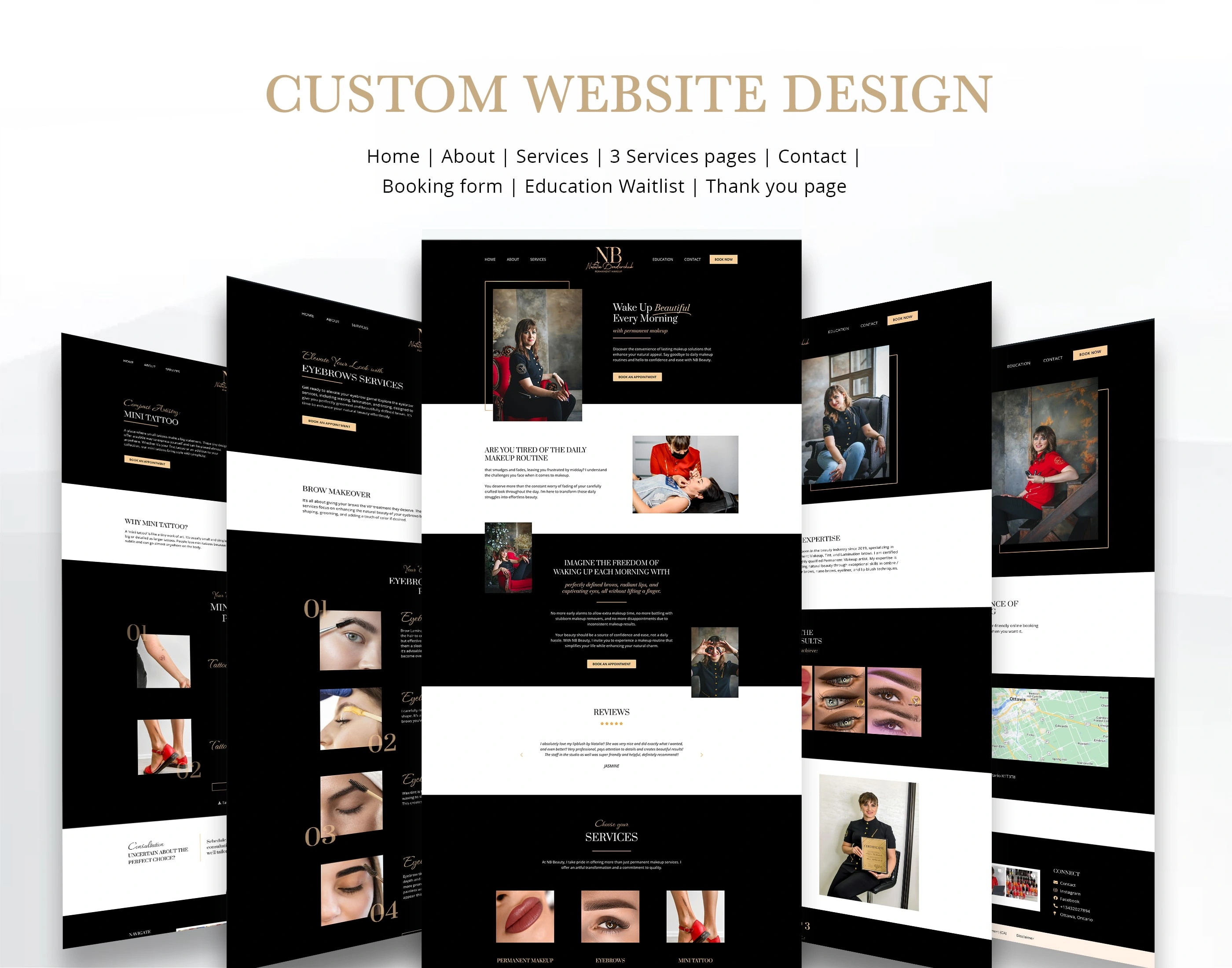 Custom website design for a permanent makeup beauty artist. Built in WordPress with Elementor drag-and-drop builder.