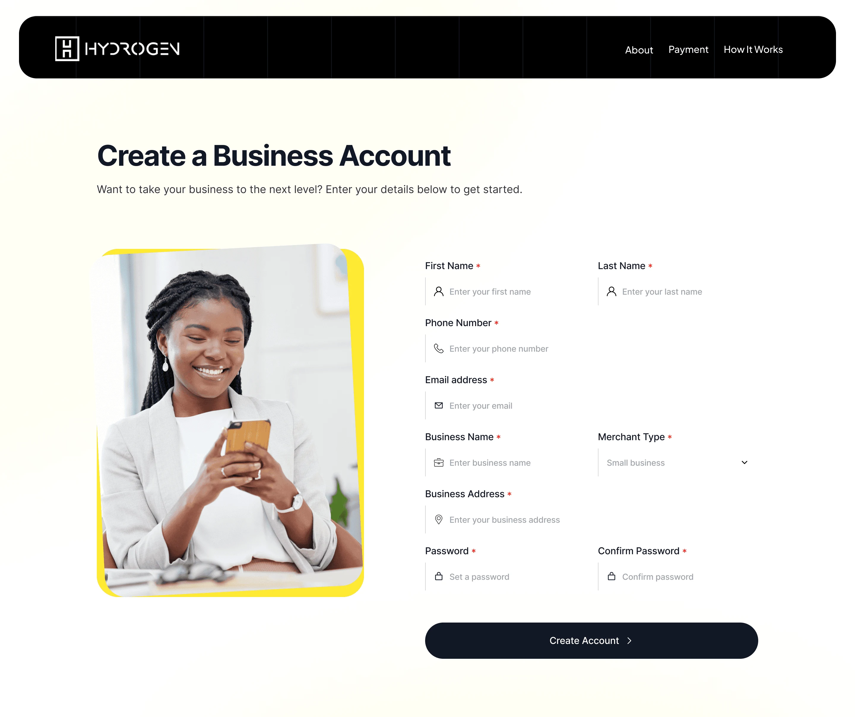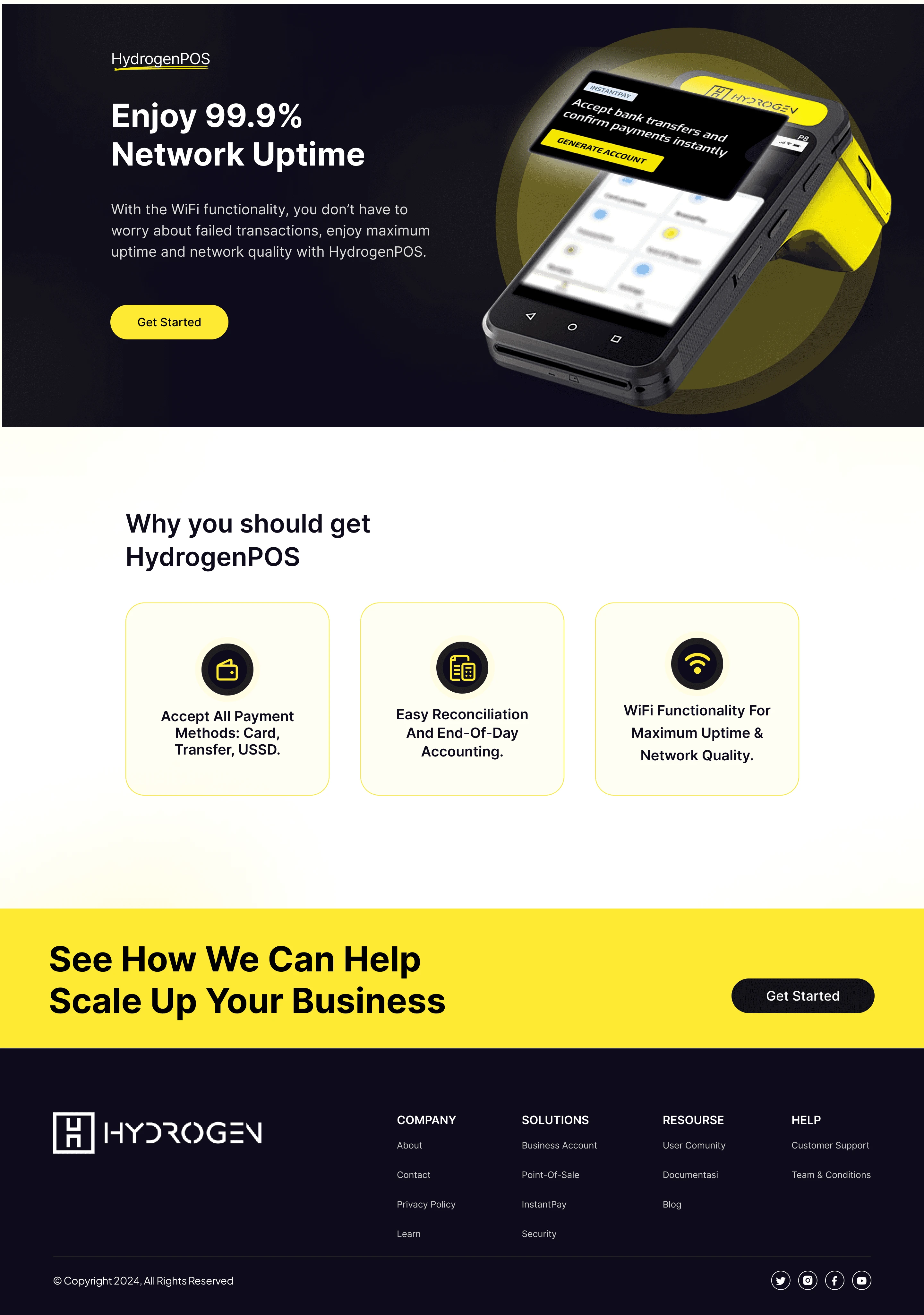 Hydrogen, a new payments company under Access Corporation, needed a landing page to introduce two of its flagship merchant products - InstantPay and POS terminals - to the Nigerian market.
