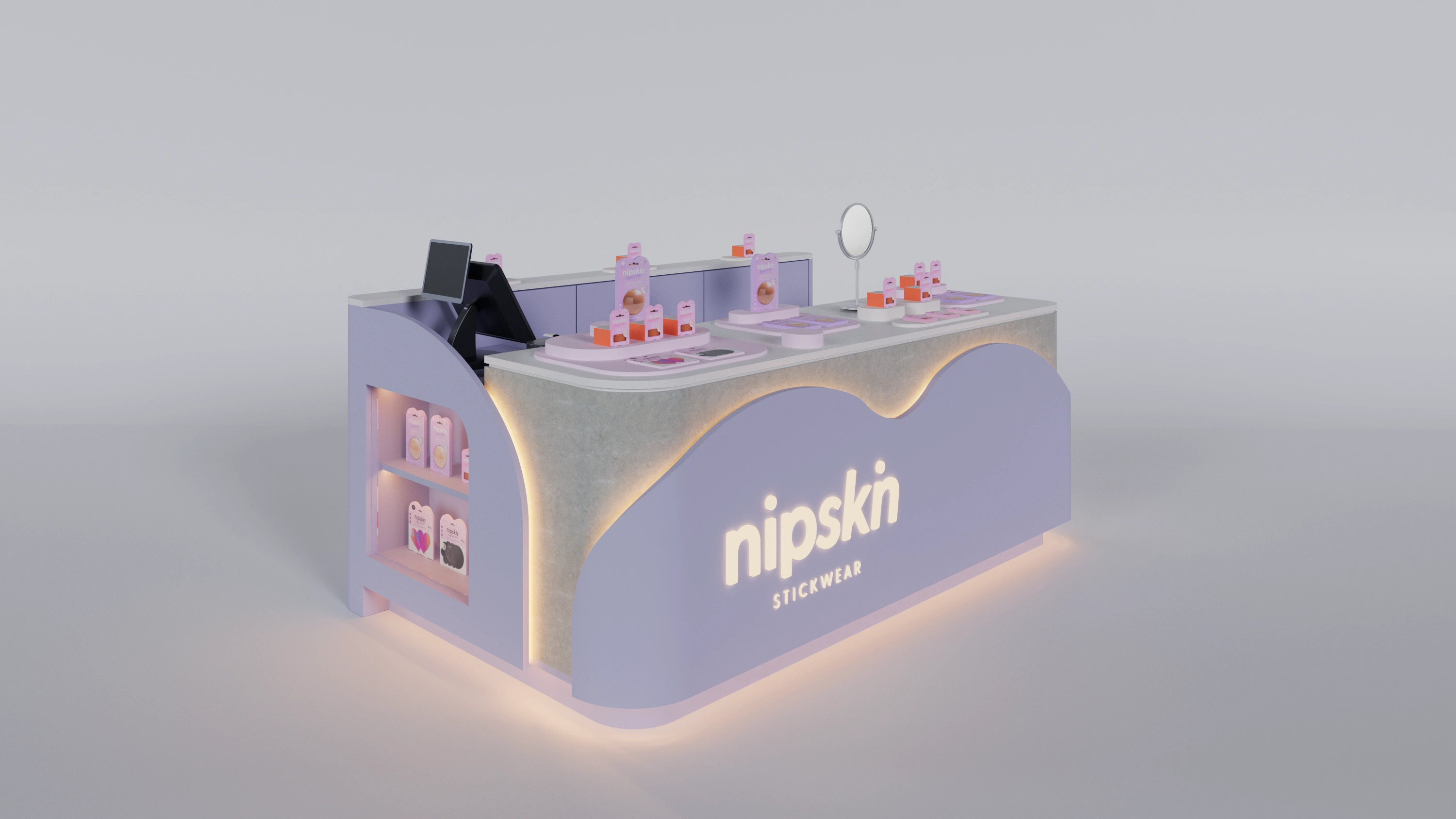 Retail kiosks & furniture for brands like Juanna, Madre Selva & Nipskin. Designed to reflect brand identity through sleek, functional 3D visuals.