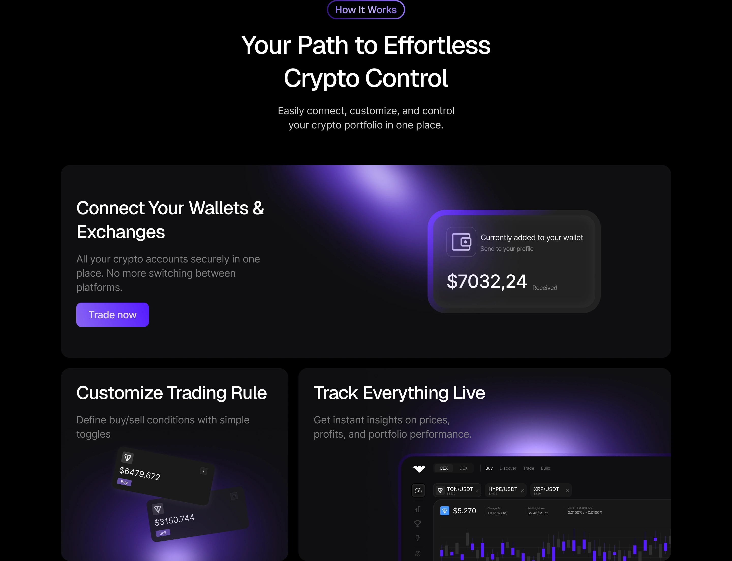 I created a dark-themed, high-tech landing page with a strategic flow. The design features a compelling hero section, dedicated feature breakdowns, social proof to build credibility, and strategically placed calls-to-action (CTAs). A simple, structured layout ensures a smooth user journey from start to finish.