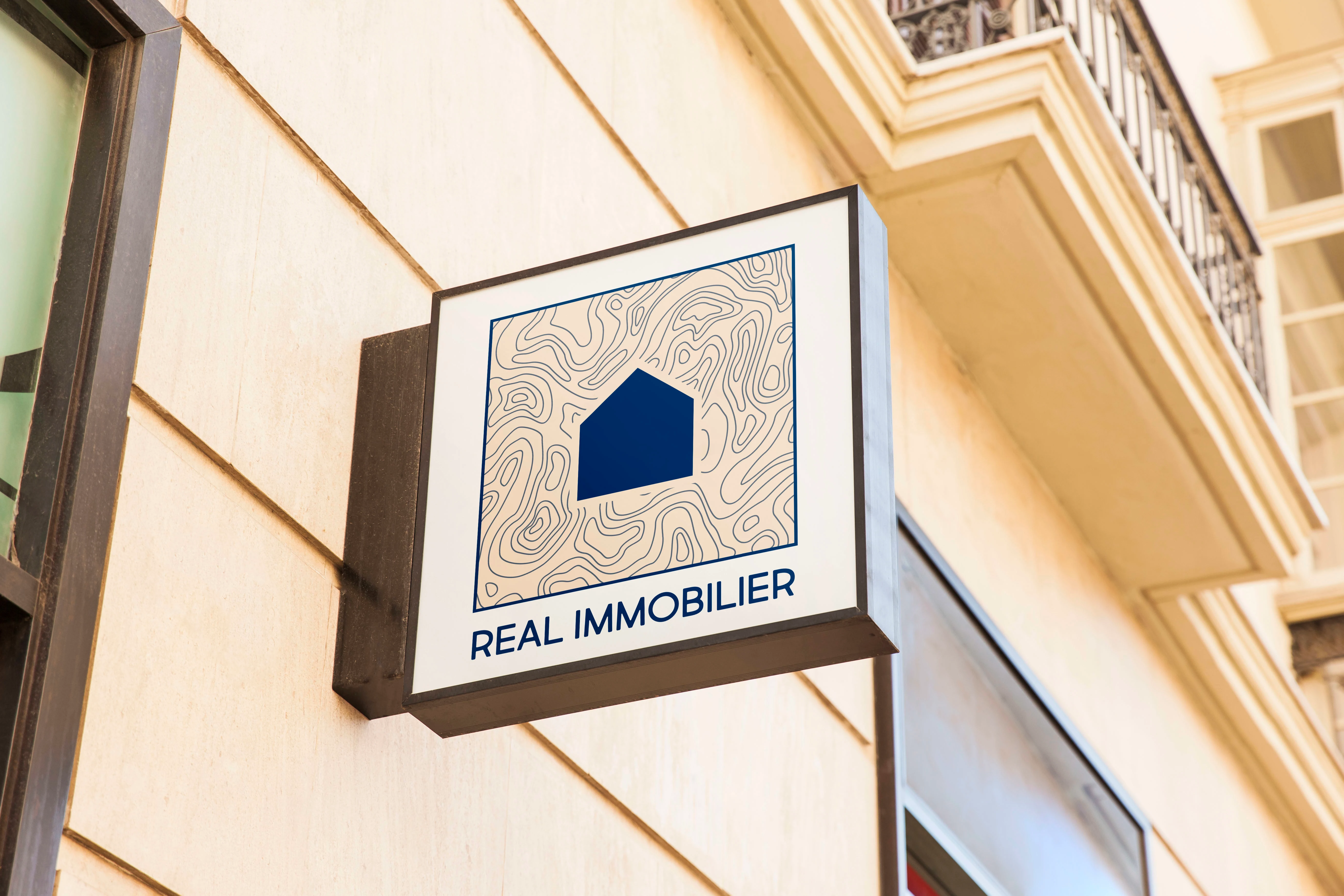 A graphic house in a topography line within a square. Modern, elegant, and trustworthy. Represents comfort, harmony, and professionalism.