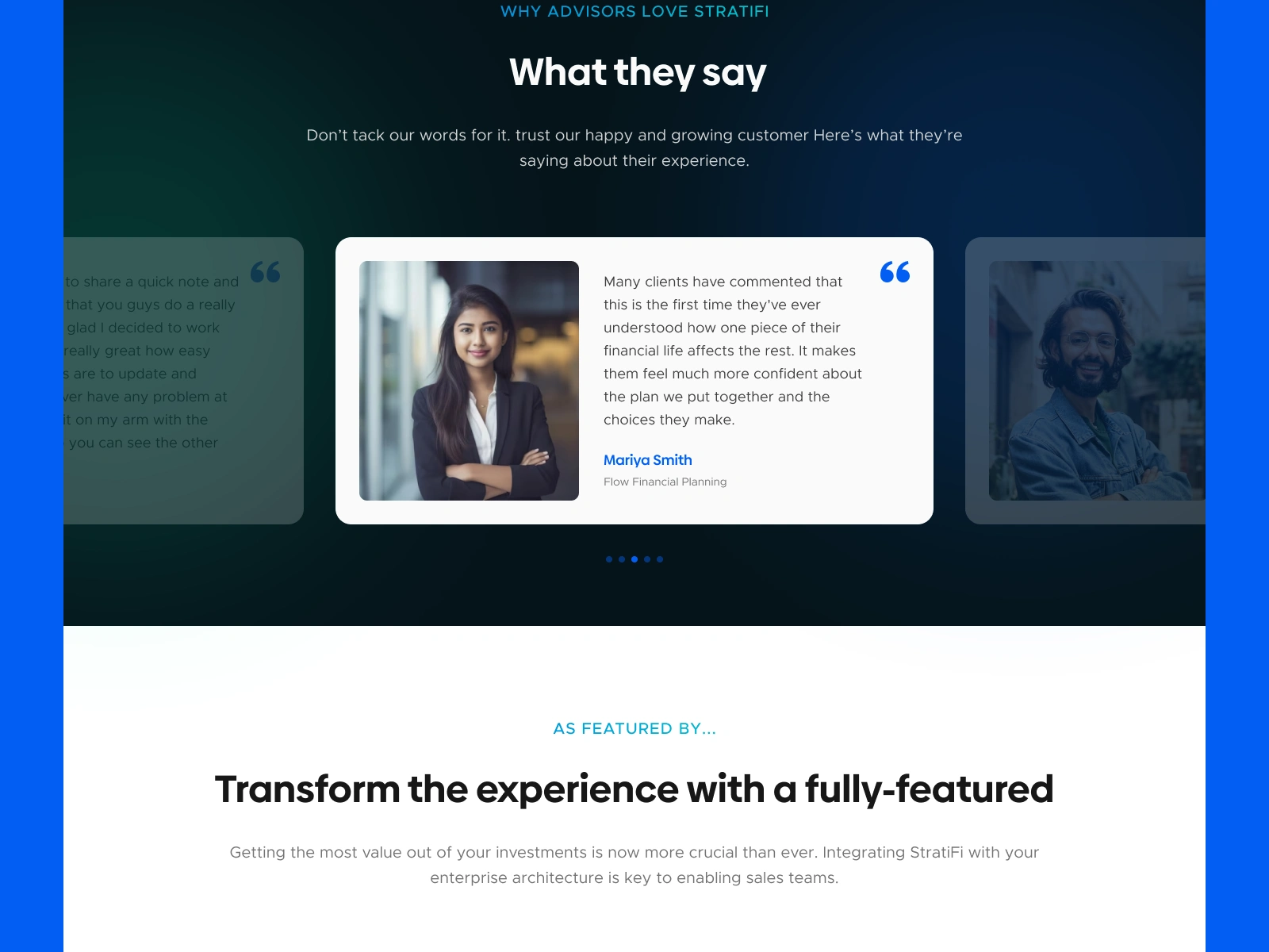 I led the end-to-end Webflow development for Stratifi.com, transforming their static design files into a fully responsive, production-ready website. My primary responsibility was to faithfully interpret the provided UI and build it in Webflow with precision — ensuring every detail, from typography to layout grids, was implemented exactly as intended.
