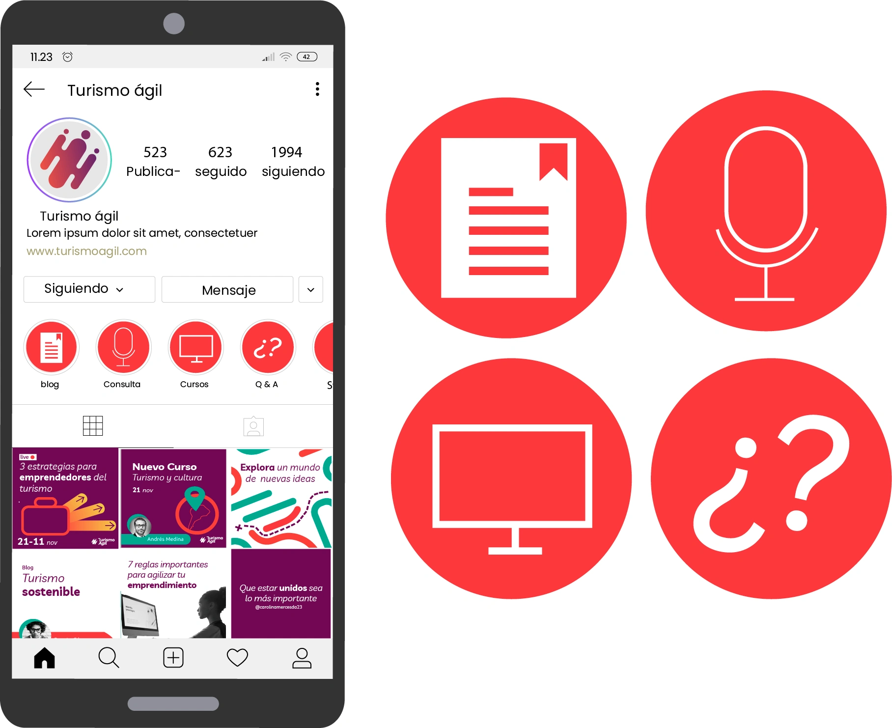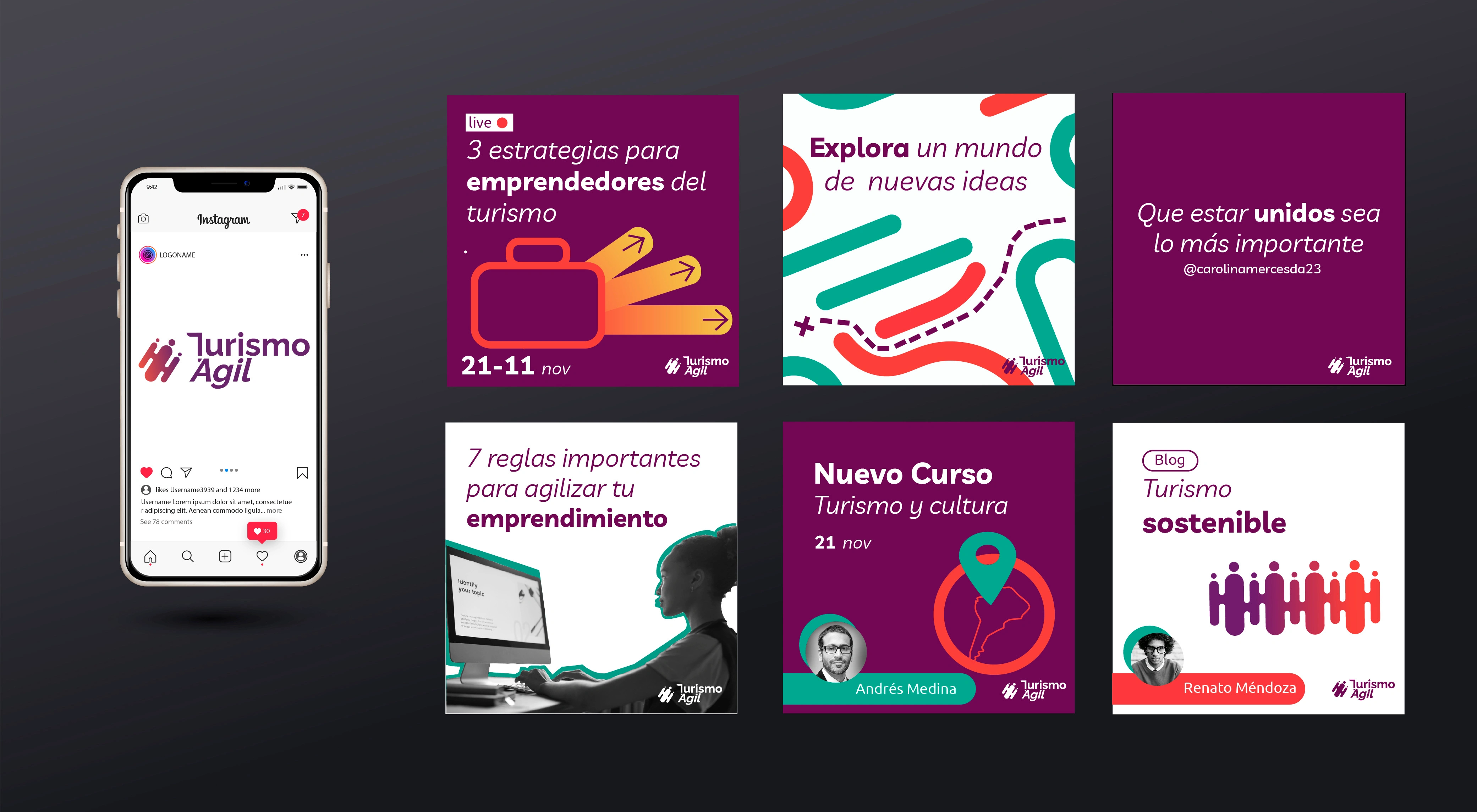 Graphic Identity and Creation of content for social networks for Agile Tourism a brand that supports entrepreneurship related to tourism.