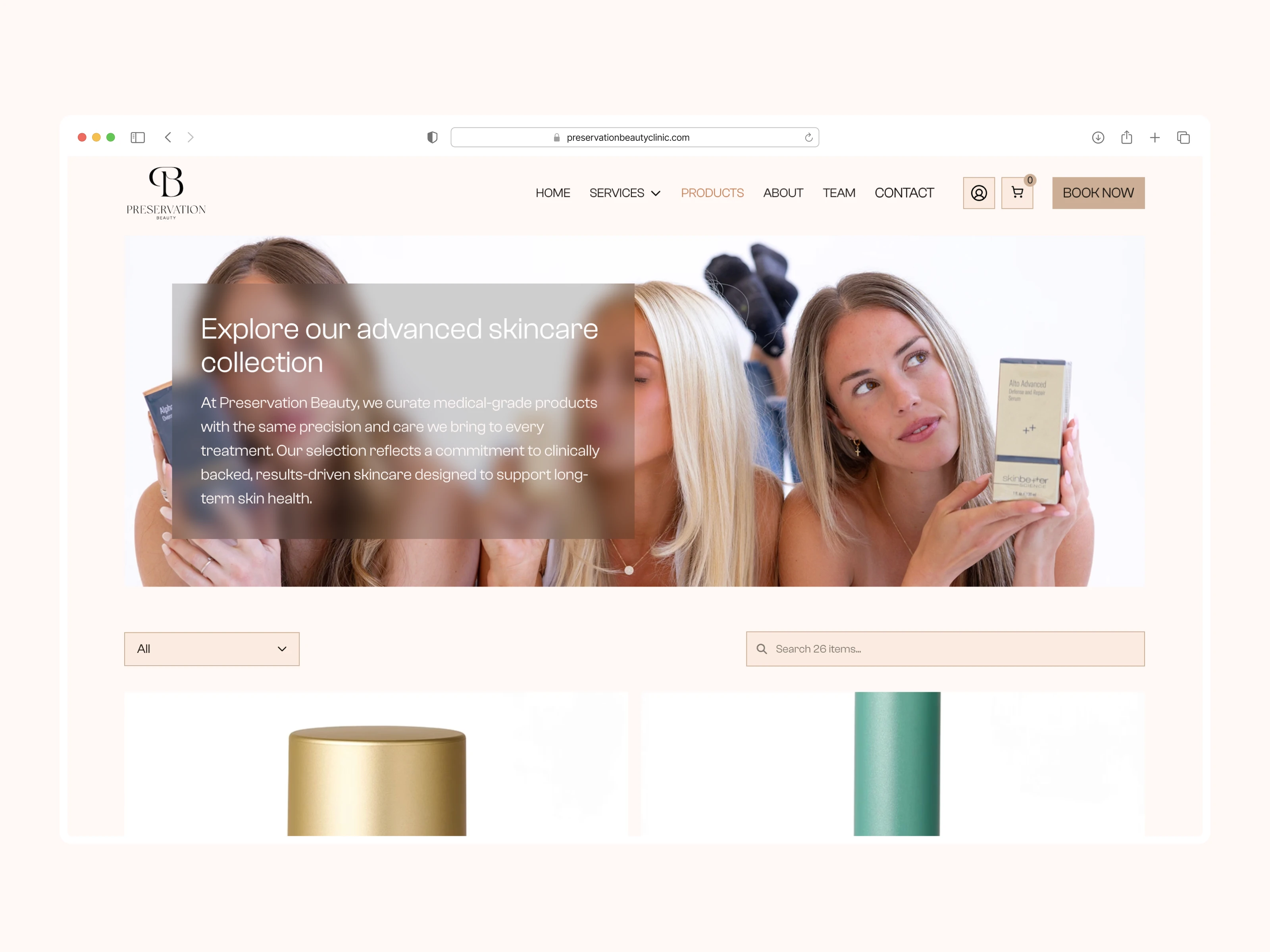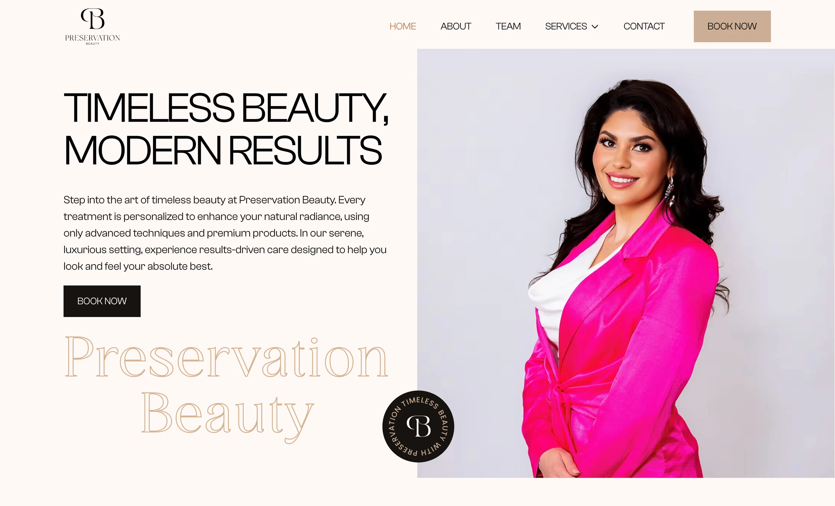 Preservation Beauty Clinic is a premium medical aesthetics practice based in Dallas, Texas. Known for treatments like Sculptra, Botox, Sofwave, and VI Peels, the clinic had already established a polished digital presence through their Framer website — elegant, editorial, and intentionally luxurious.