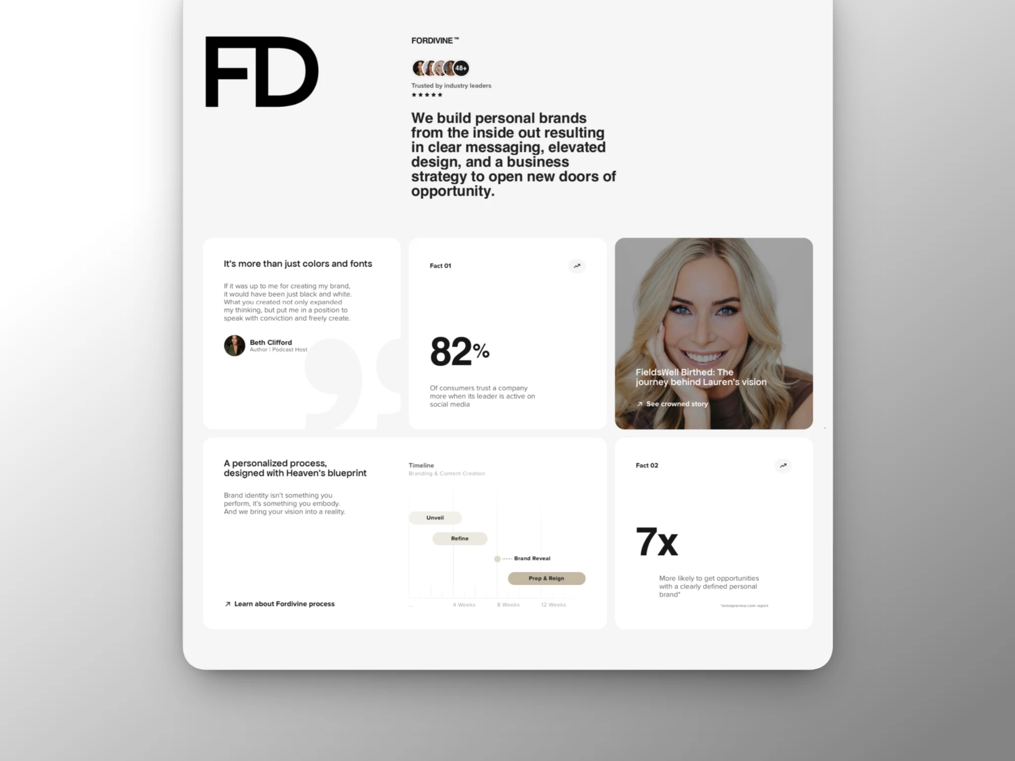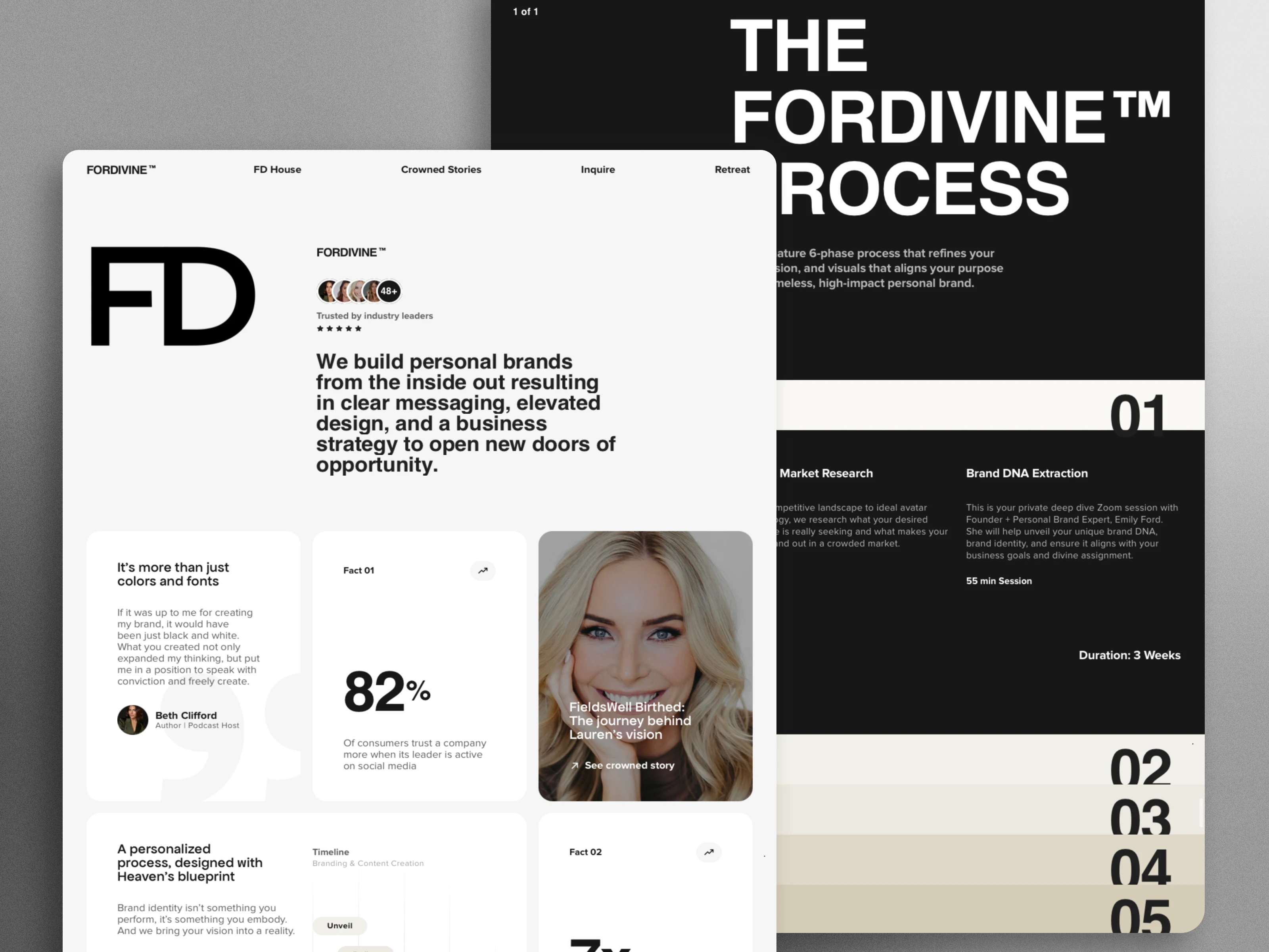 When FORDIVINE came to me, they needed a website that reflected the quality and clarity of their personal branding work. Speed mattered, but intention mattered more — the site had to feel refined, credible, and aligned with their positioning in the market.