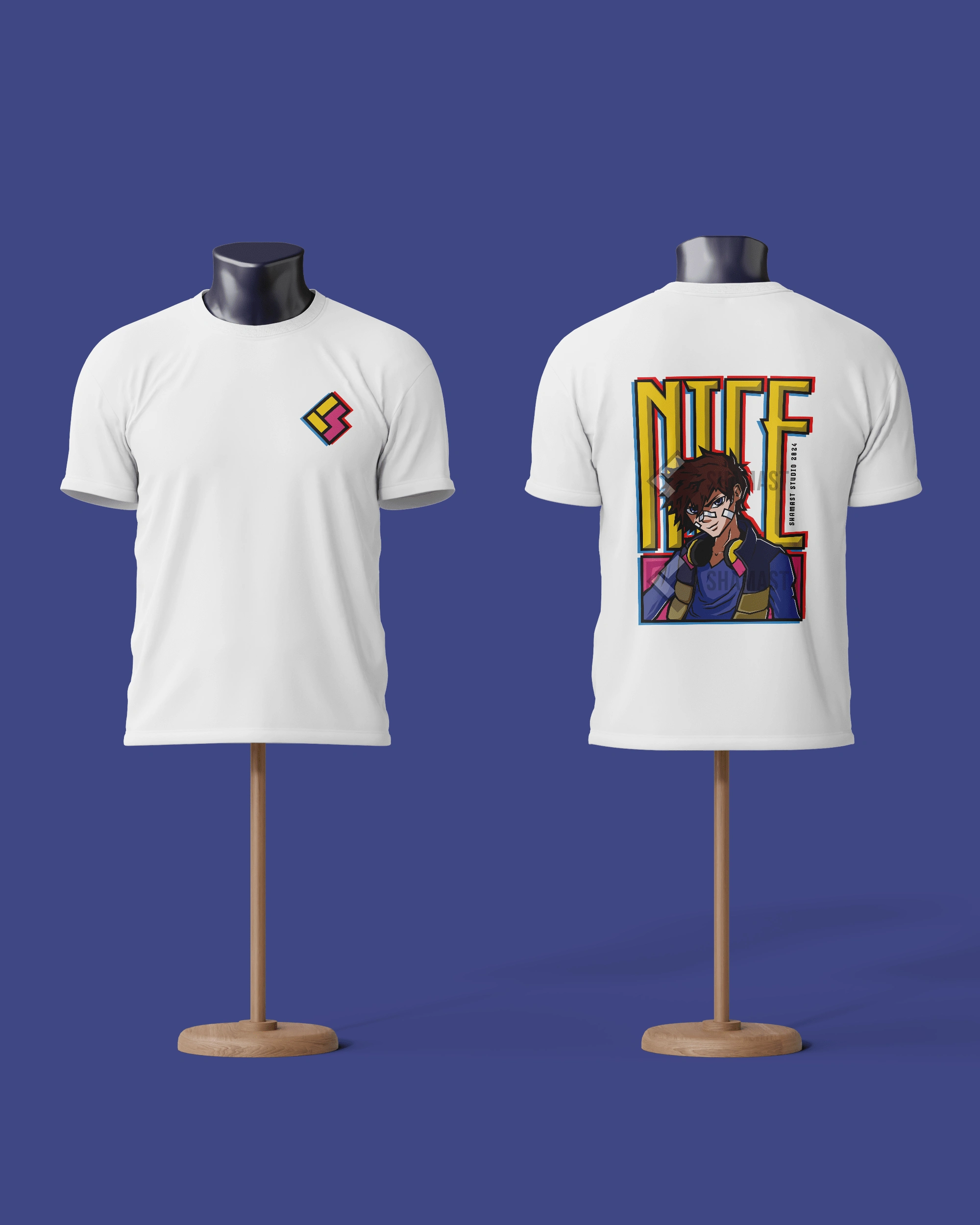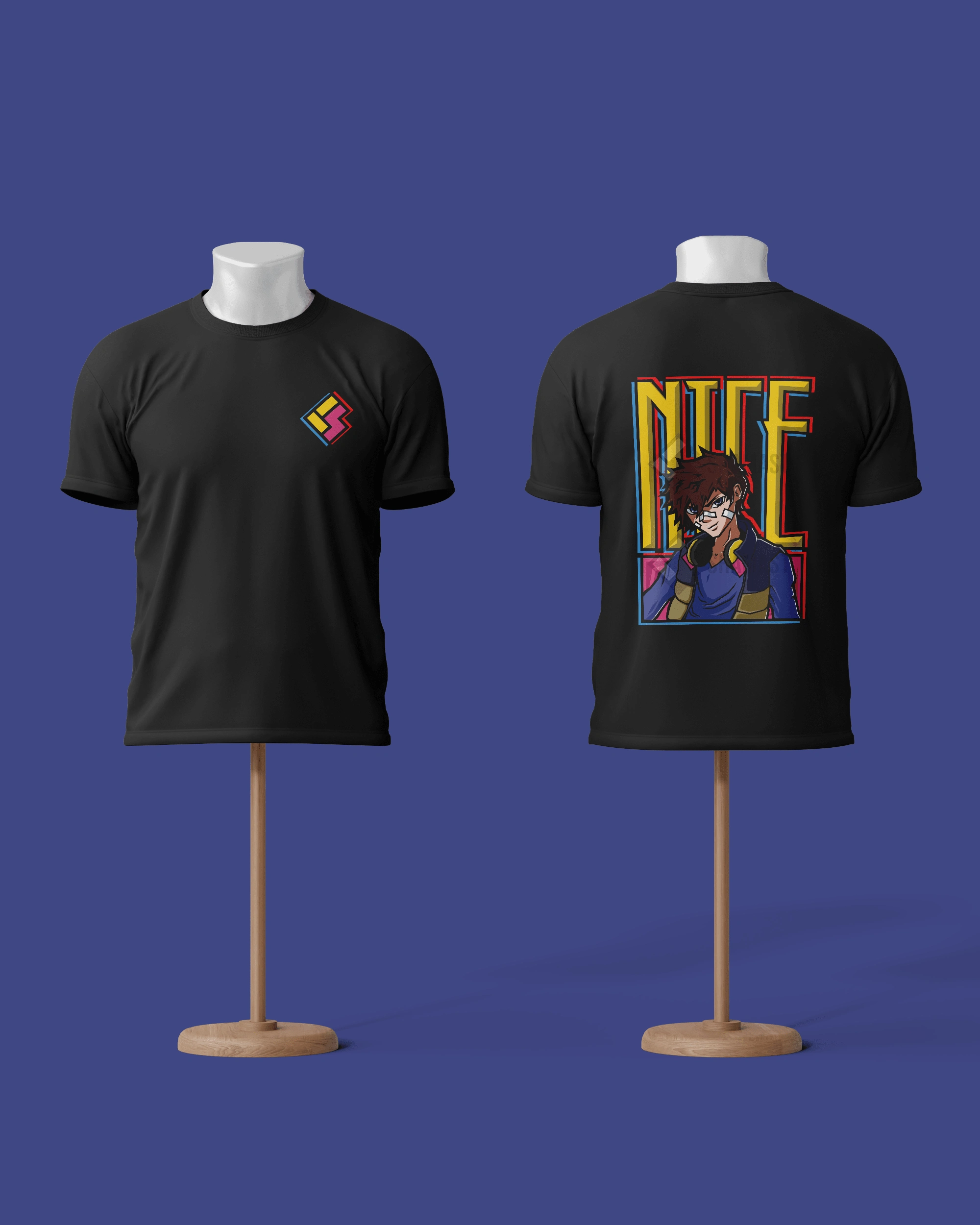 A t-shirt design with fanart of Nice from the anime Hamatora.