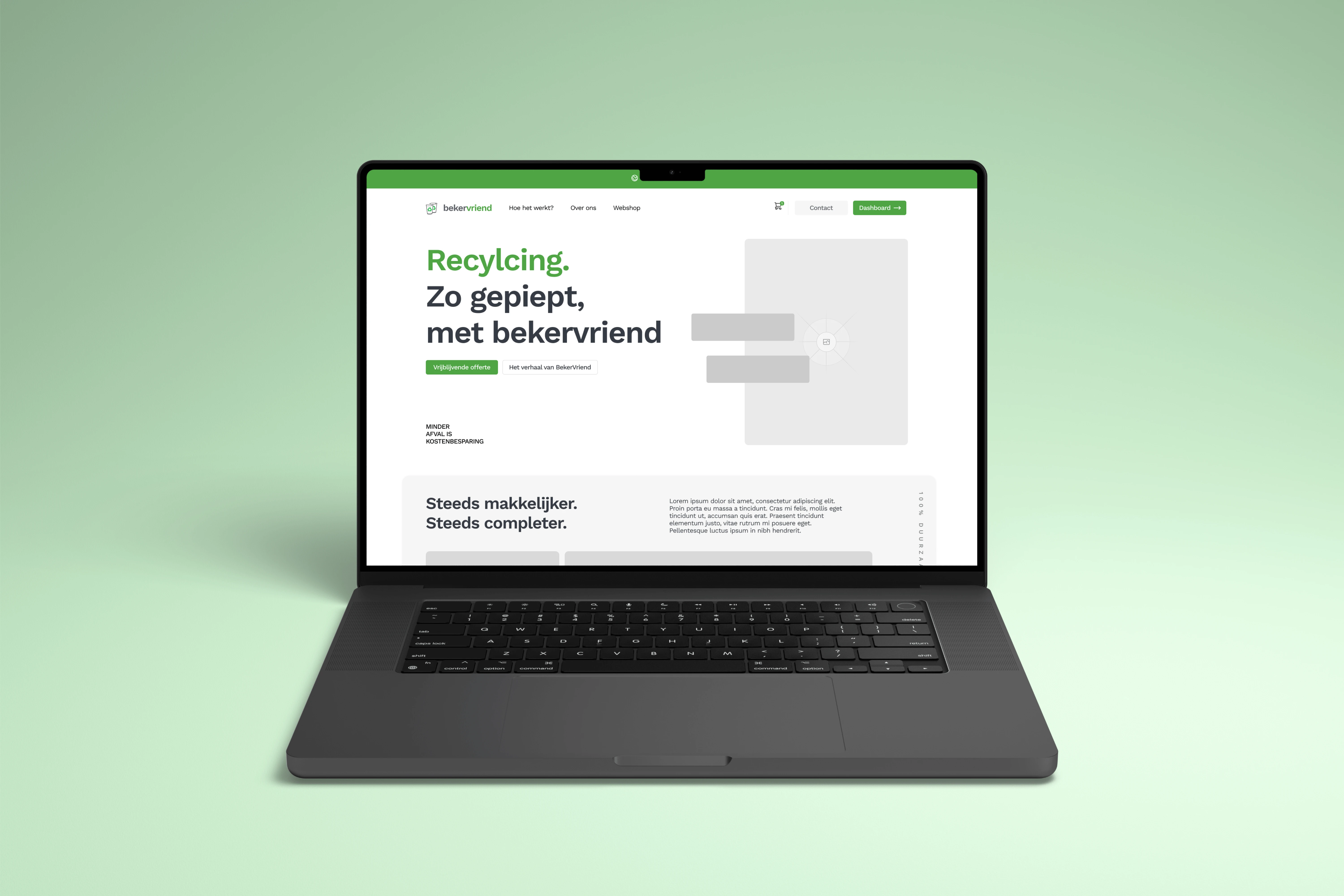 Mockups for a website that sells recycling solutions to businesses
