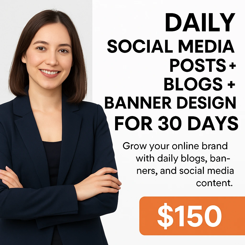 Daily Social Media Posts + Blogs + Banner Design for 30 Days