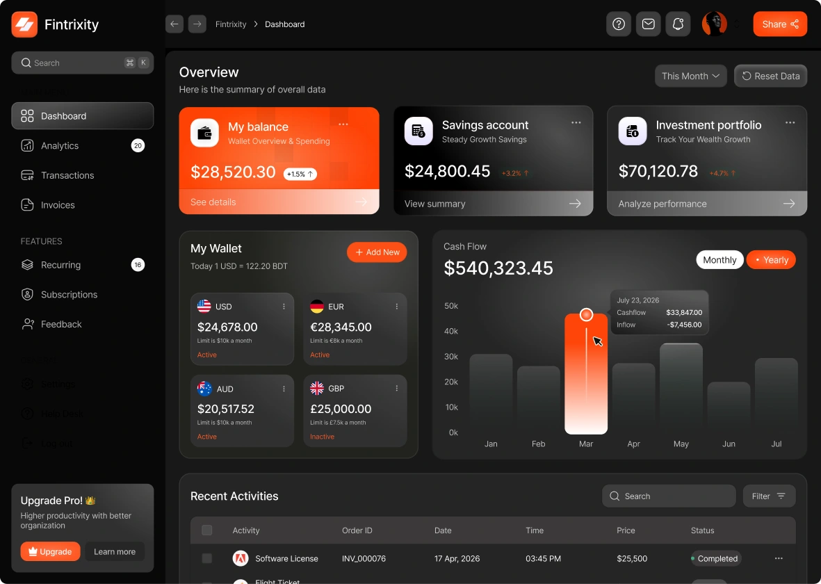 I designed a dark-themed, high-contrast interface with a strong visual identity, emphasizing clarity and hierarchy.