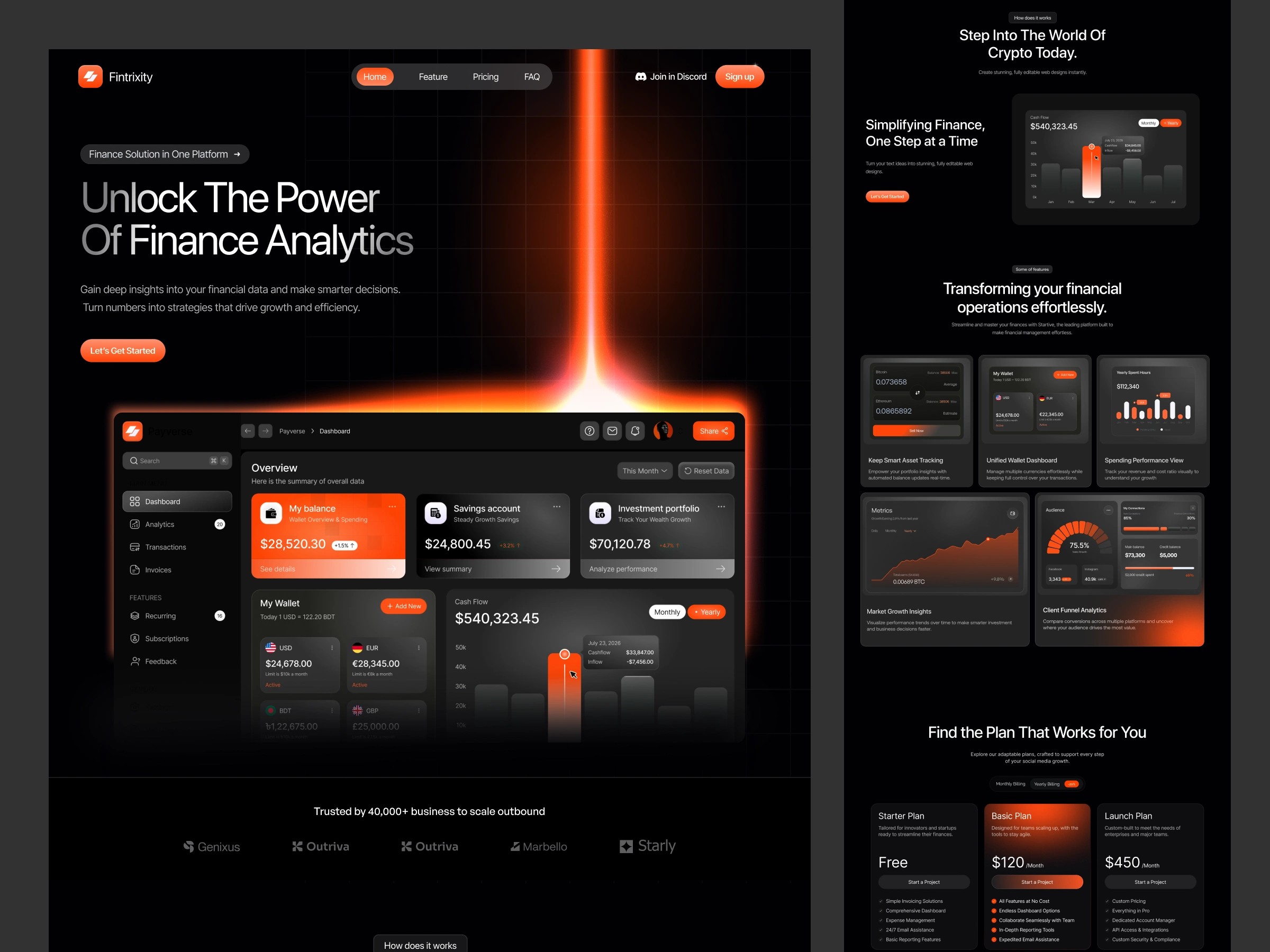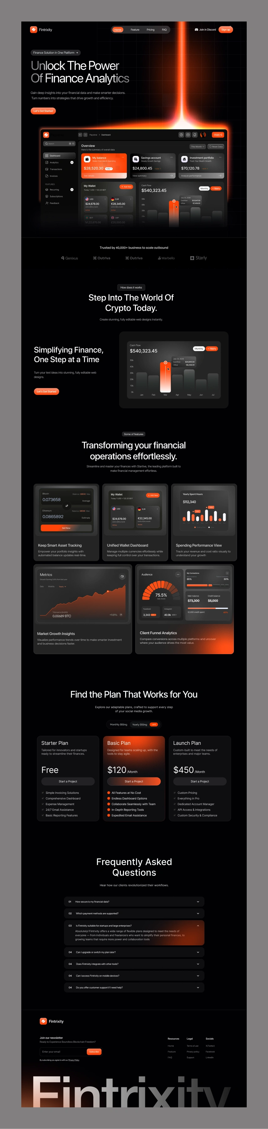 The layout highlights key metrics, real-time insights, and feature benefits using clean cards, intuitive charts, and focused call to actions.