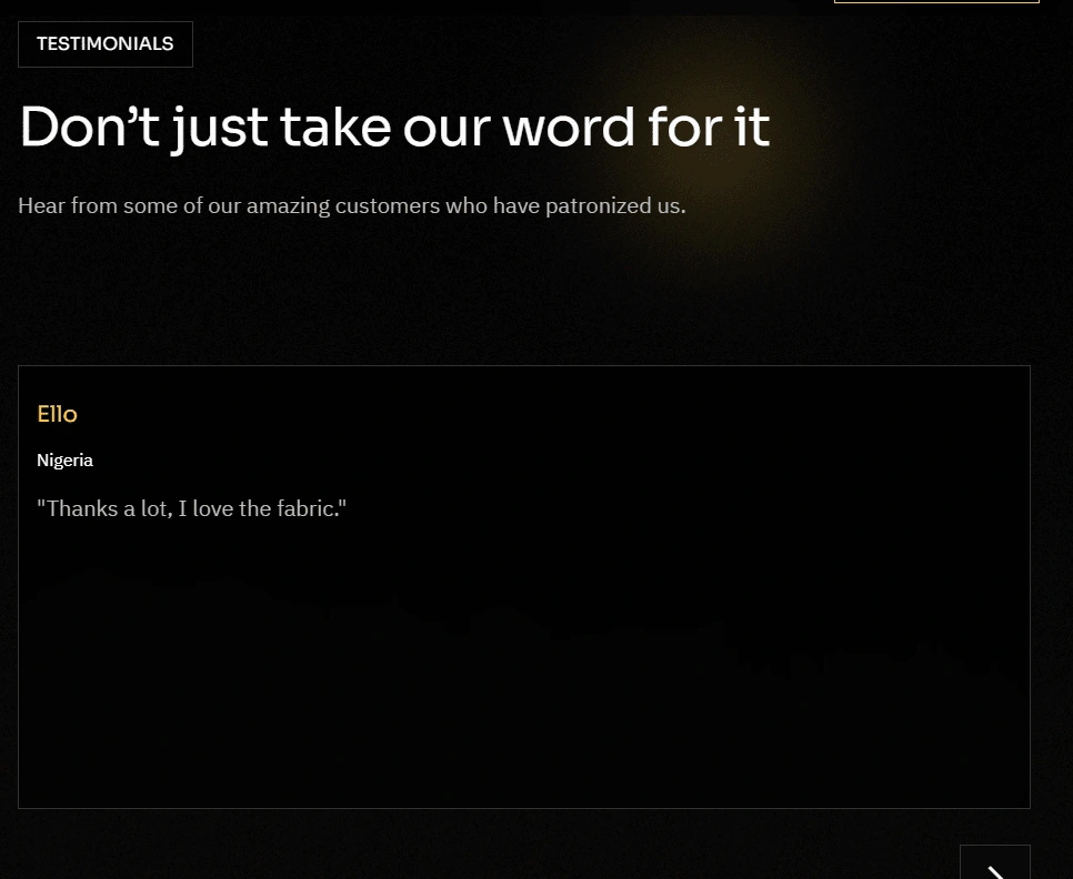 Fabric Showcase: Designed an intuitive and visually appealing section to prominently display Asoebi Quarters’ diverse range of premium fabrics.