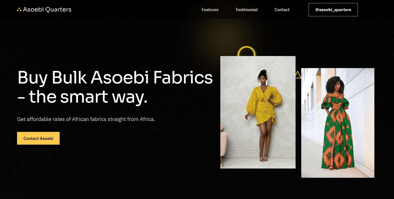 Custom Web Design: Crafted a unique and engaging website for Asoebi Quarters using Webflow, tailored to reflect the brand’s distinctive identity.