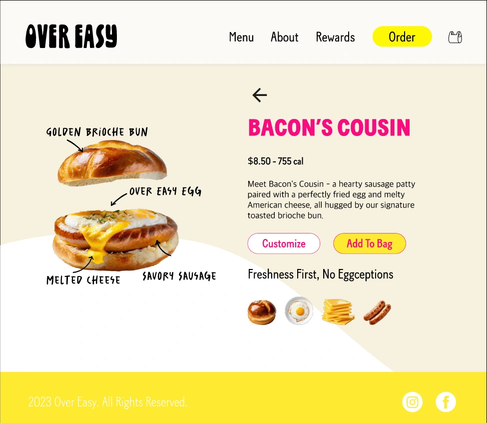 Over Easy is a breakfast spot celebrated for its creative breakfast options and vibrant, inviting branding.